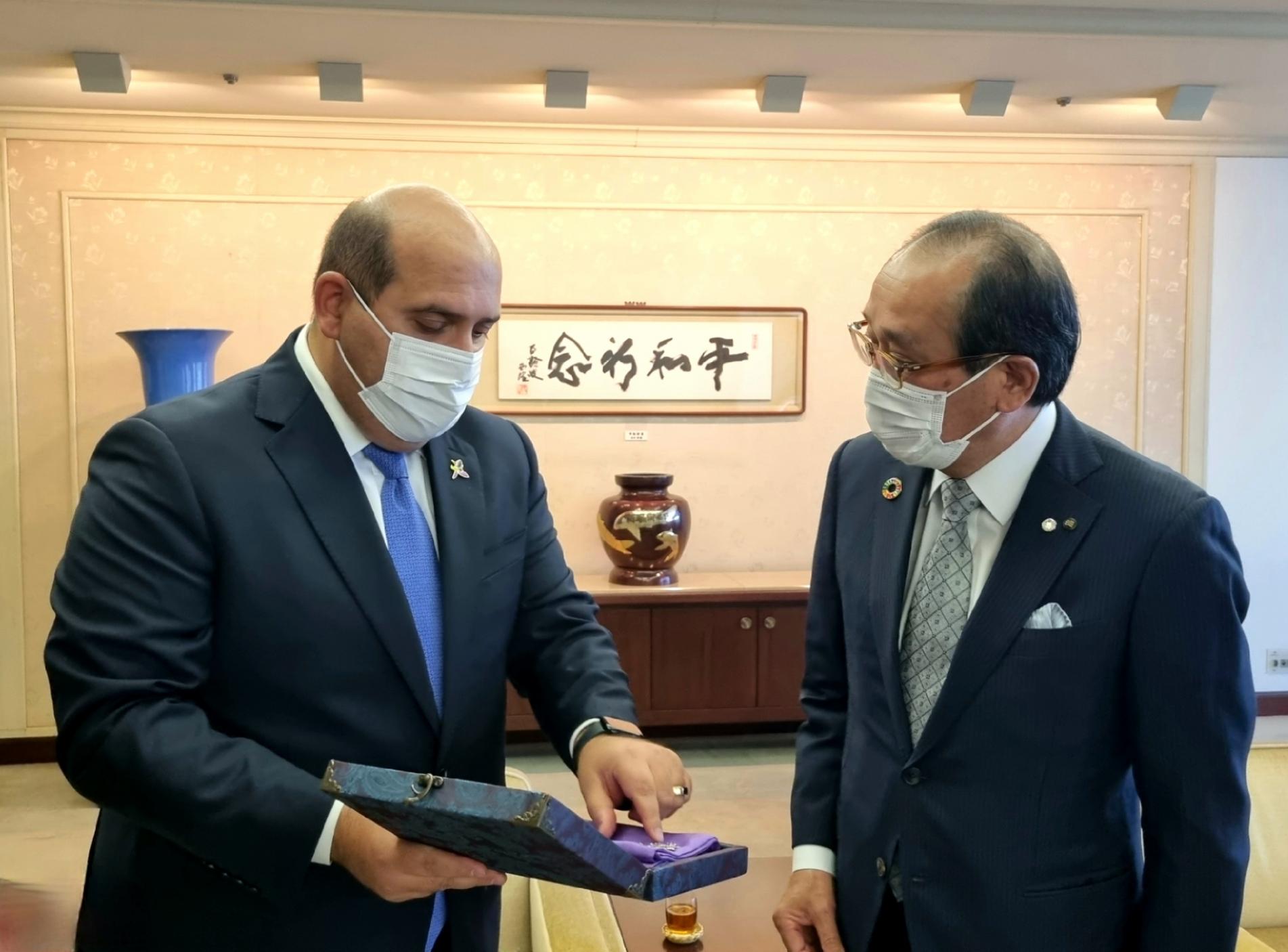 Перед конференцией состоялась встреча между спецпредставителем Эмином Гусейновым и мэром Хиросимы Казуми Мацуи. В ходе встречи была представлена информация об истории и культуре Агдамского района, актах вандализма, совершавшихся на наших землях в течение 30 лет, победе в 44-дневной Отечественной войне и текущих восстановительных процессах, обсуждены конкретные вопросы по развитию двустороннего сотрудничества между городами Агдам и Хиросима.