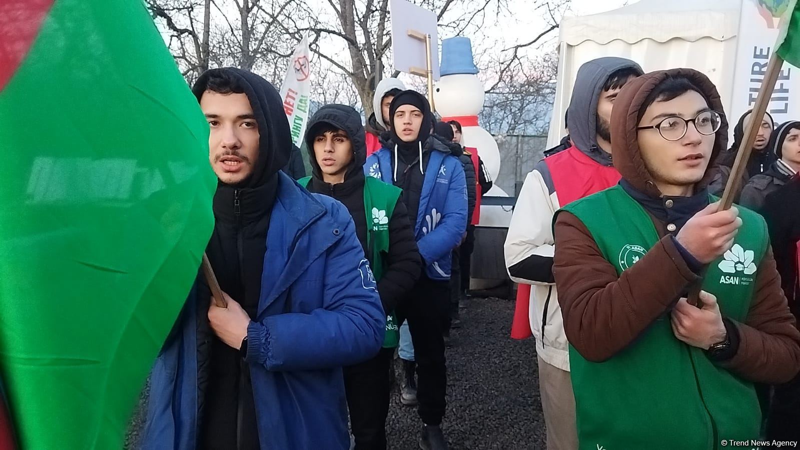 Как сообщает Trend, несмотря на холодную погоду, участники акции продолжают протестовать.