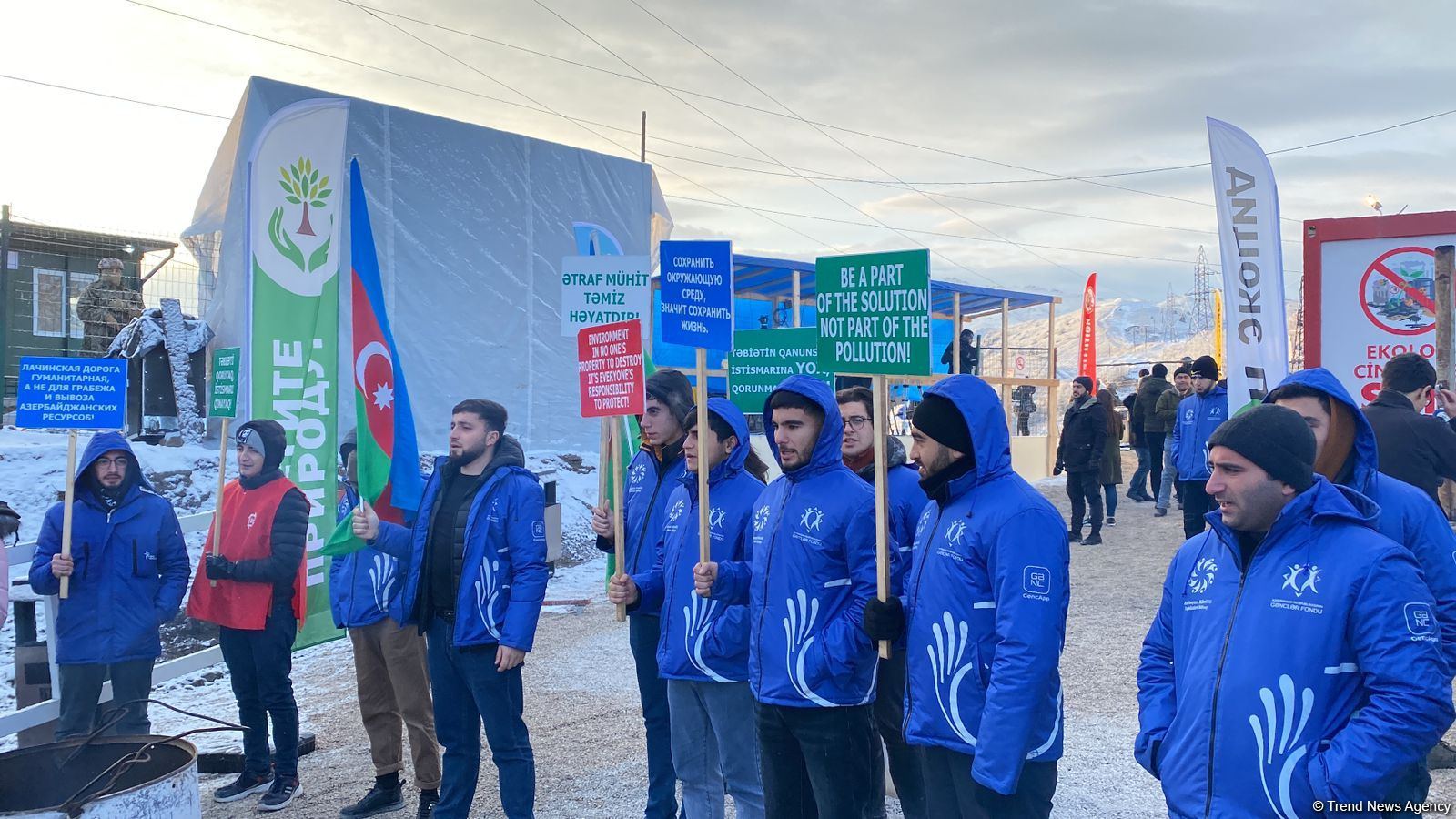 Мирная акция азербайджанцев в зоне временной дислокации российского миротворческого контингента продолжается, несмотря на снежную погоду, сообщает Trend.
