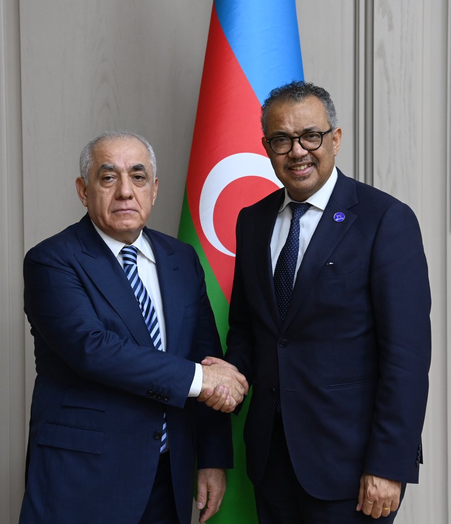 Премьер-министр Азербайджана Али Асадов встретился 14 марта с генеральным директором Всемирной организации здравоохранения Тедросом Адханомом Гебрейесусом.