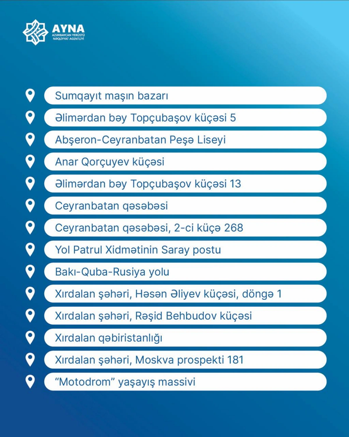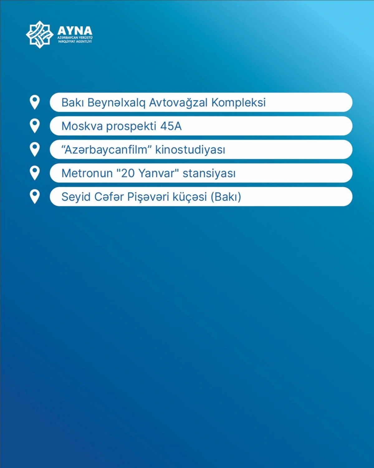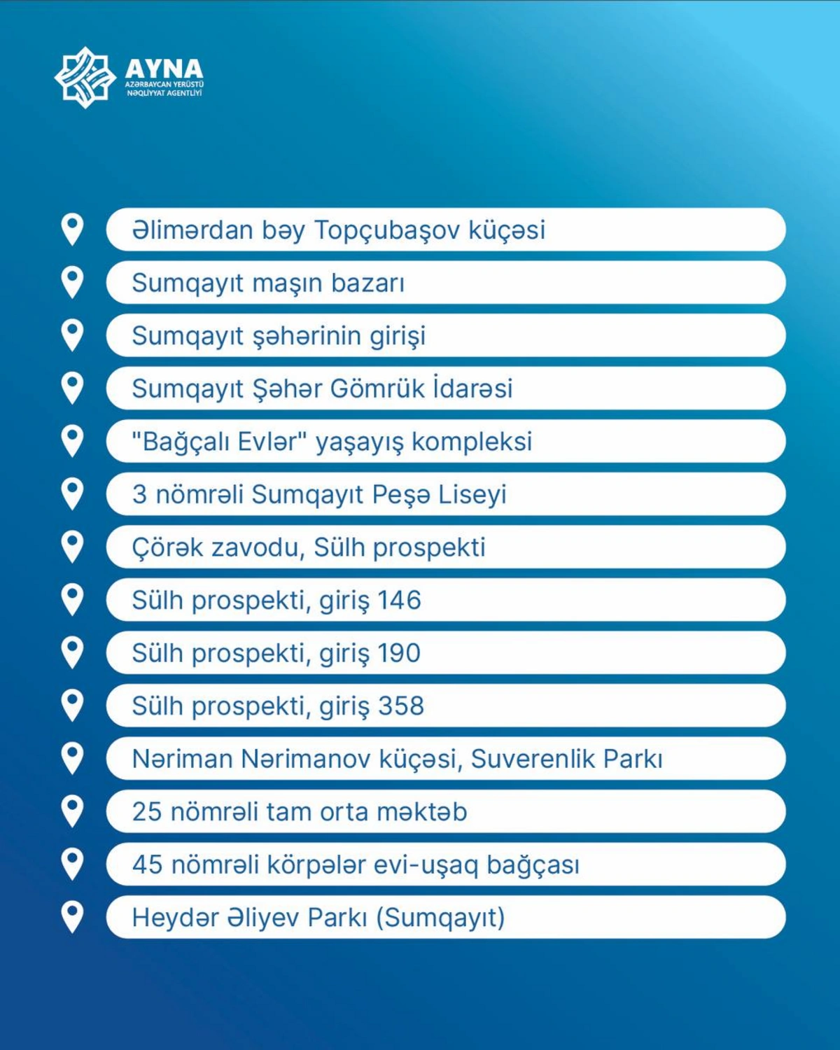 AYNA обнародовало детали нового автобусного маршрута из Сумгайыта в Баку