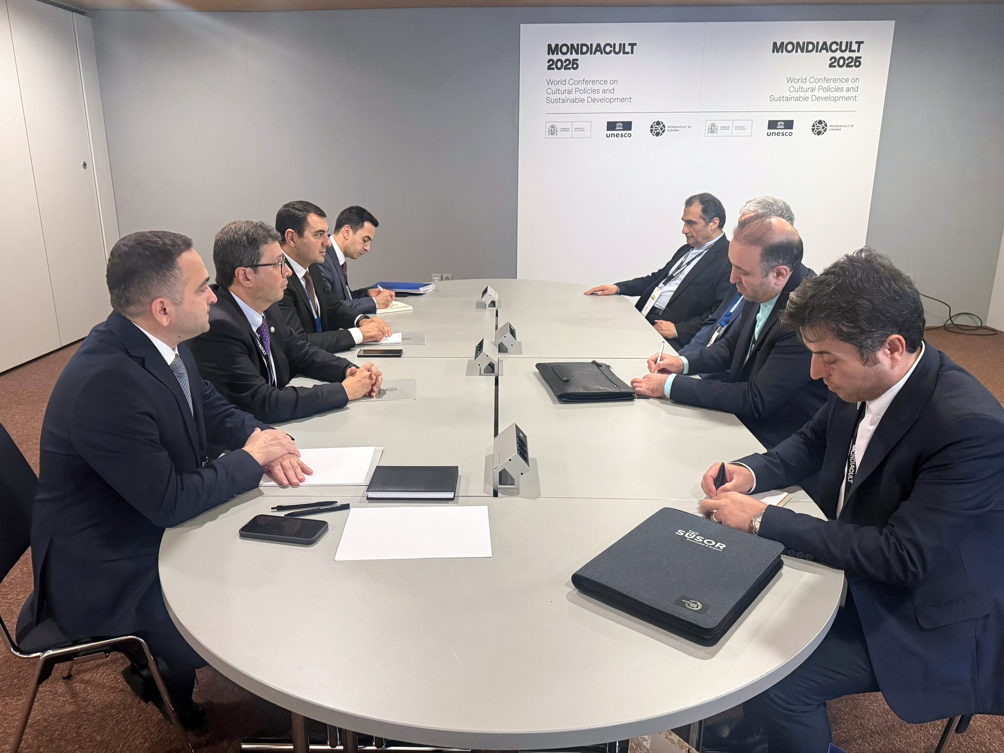 29 сентября в рамках Всемирной конференции ЮНЕСКО по культурной политике и устойчивому развитию, проходящей в Барселоне (Испания), министр культуры Азербайджана Адиль Керимли встретился с министром культуры и исламского руководства Исламской Республики Иран Аббасом Салехом Шариати, сообщили «Новой Эпохе» в Министерстве культуры Азербайджана.