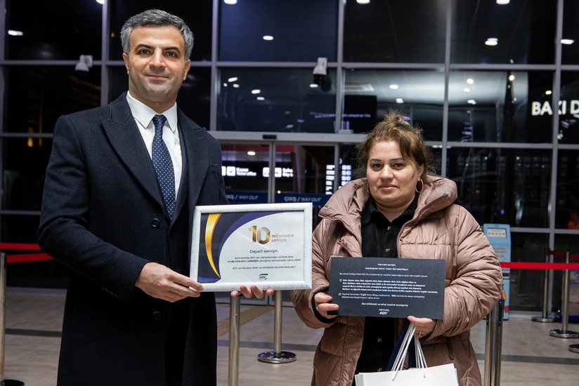 Ее торжественно встретили на Бакинском железнодорожном вокзале и вручили сертификат и памятные подарки.