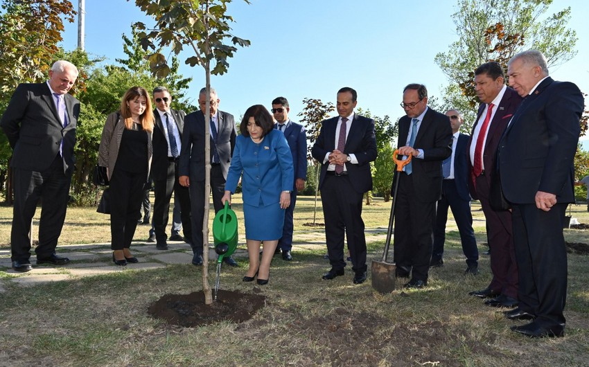 Как сообщили Report в отделе печати и связей с общественностью Милли Меджлиса, делегация приняла участие в акции по посадке деревьев, посвященной 100-летию общенационального лидера Гейдара Алиева.