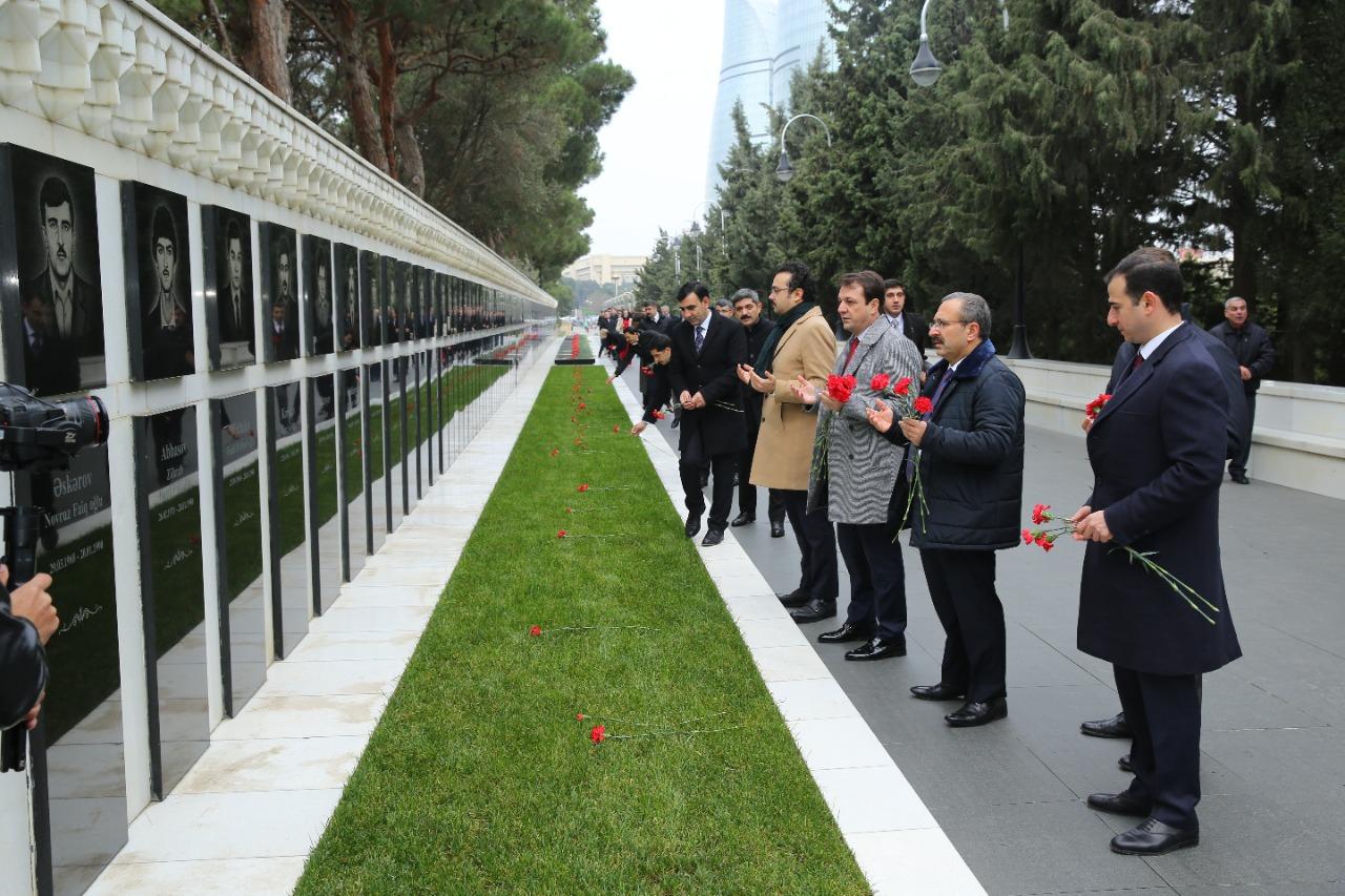 Делегация посетила Аллею почетного захоронения, где почтила память общенационального лидера нашего народа, архитектора и основателя современного независимого Азербайджанского государства Гейдара Алиева, возложила венок к его могиле, а также могилу выдающегося ученого-офтальмолога академика Зарифы Алиевой.