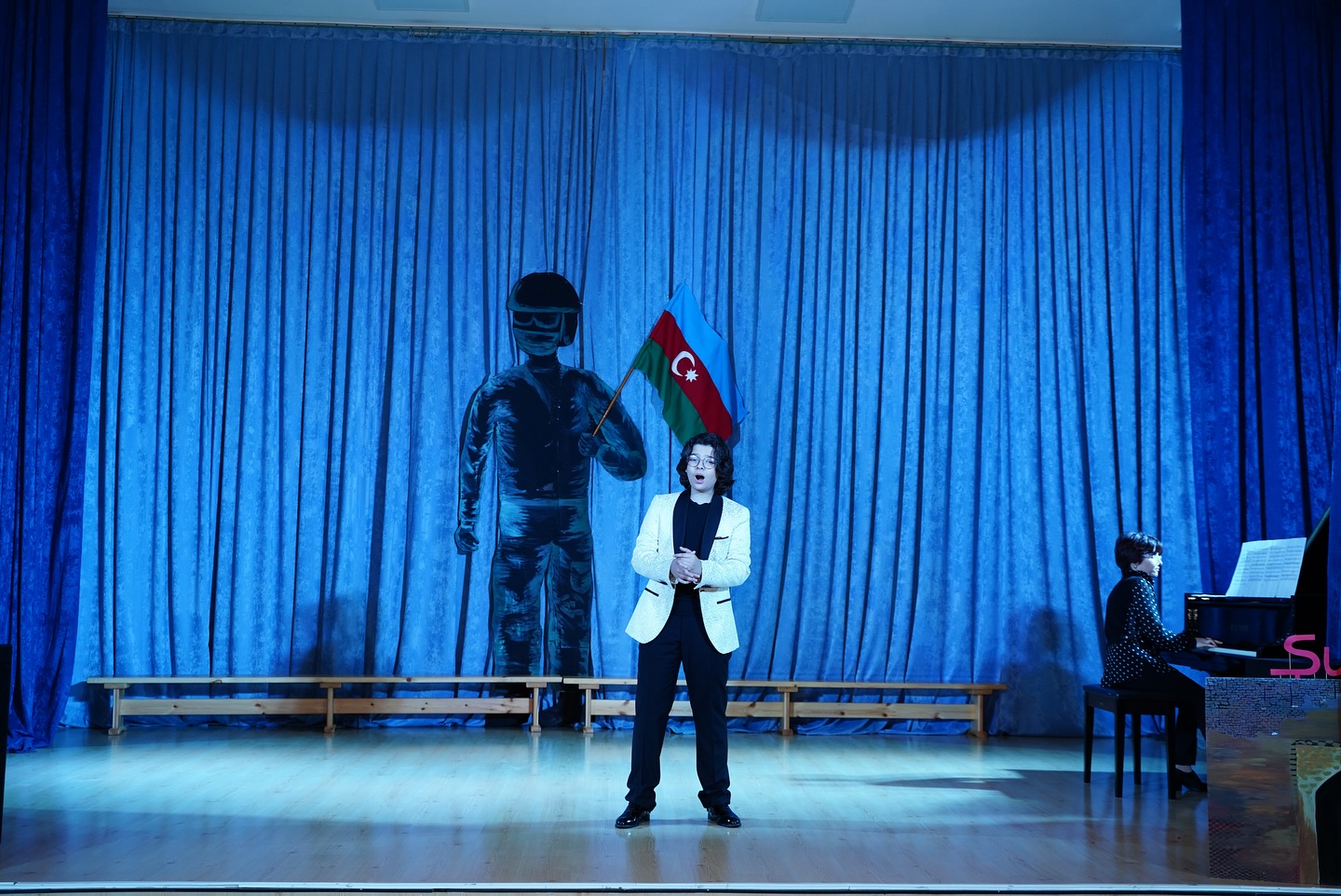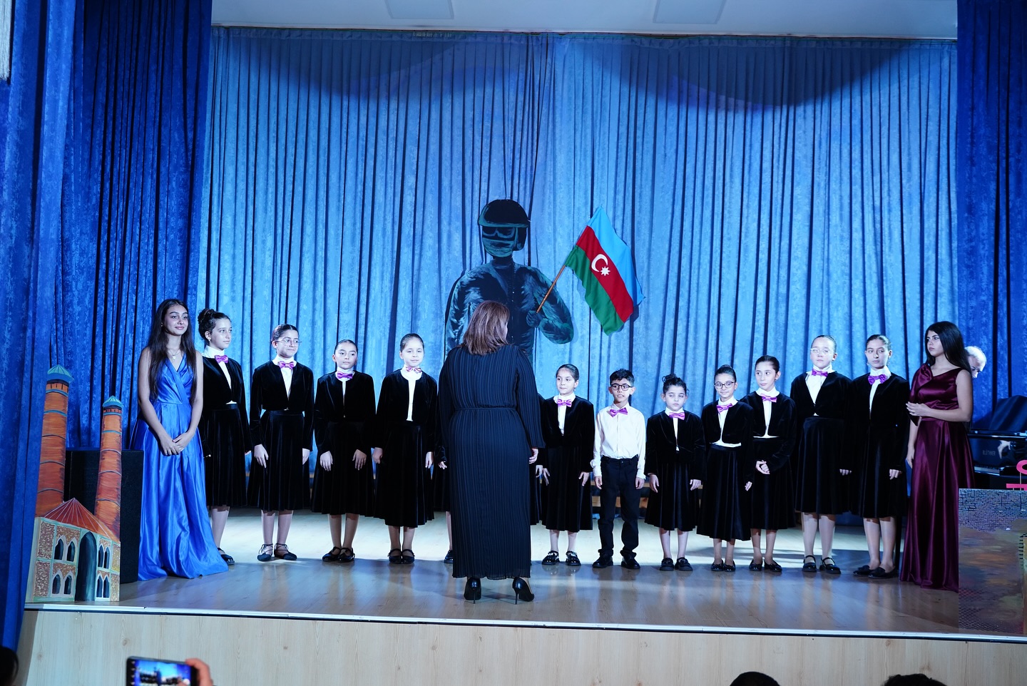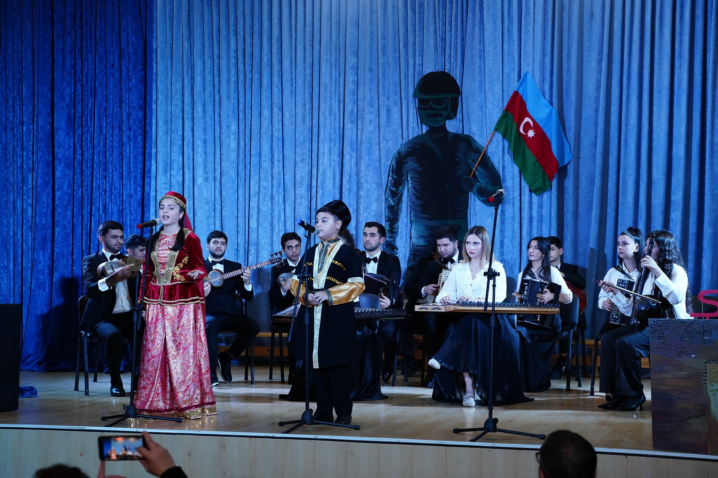 В концерте приняли участие: духовой ансамбль Государственной детской филармонии (художественный руководитель Сарван Мехдизаде), ансамбль народных инструментов «Sədəf» и солисты (художественный руководитель Гонча Мехтиева, преподаватель Эльбрус Нифталиев), детский хор «Səda» (художественный руководитель Айсель Мехдизаде), вокальный класс (преподаватель Лейла Асланова), ансамбль народного танца (художественные руководители Нигяр Зейналова, Магомед Гулиев, преподаватели Гюнель Тахмазова, Зейнал Джигарханов), хор «Европейско-азербайджанской школы» (художественный руководитель Кямаля Ализаде), солисты — Аскерова Мелекханым, Гюлай Ахмедлы, Аян Мамедова, Тунар Гадимов и Эйнулла Дадашлы, Шамиль Мамедов (саз), Микаил Зейналлы (кяманча), Теймур Гараев (вокал), Фарида Тапдыгова (виолончель), Фазиль Гейбатзаде (губная гармошка), Аян Байрамлы (вокал), Амина Терегулова (скрипка), Асман Мамедли (скрипка) исполнили патриотические произведения, мугамы, народные песни и танцевальные номера.