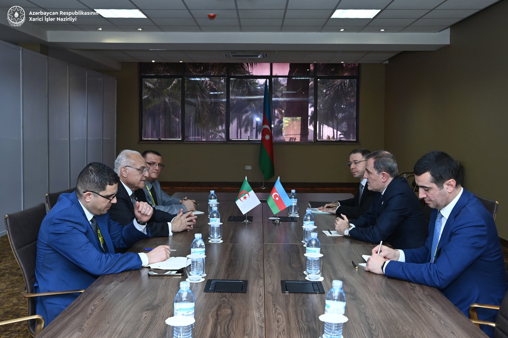 Министр иностранных дел Азербайджана Джейхун Байрамов в рамках 19-го саммита Движения неприсоединения встретился с министром иностранных дел и национального сообщества Алжира Ахмедом Аттафом.