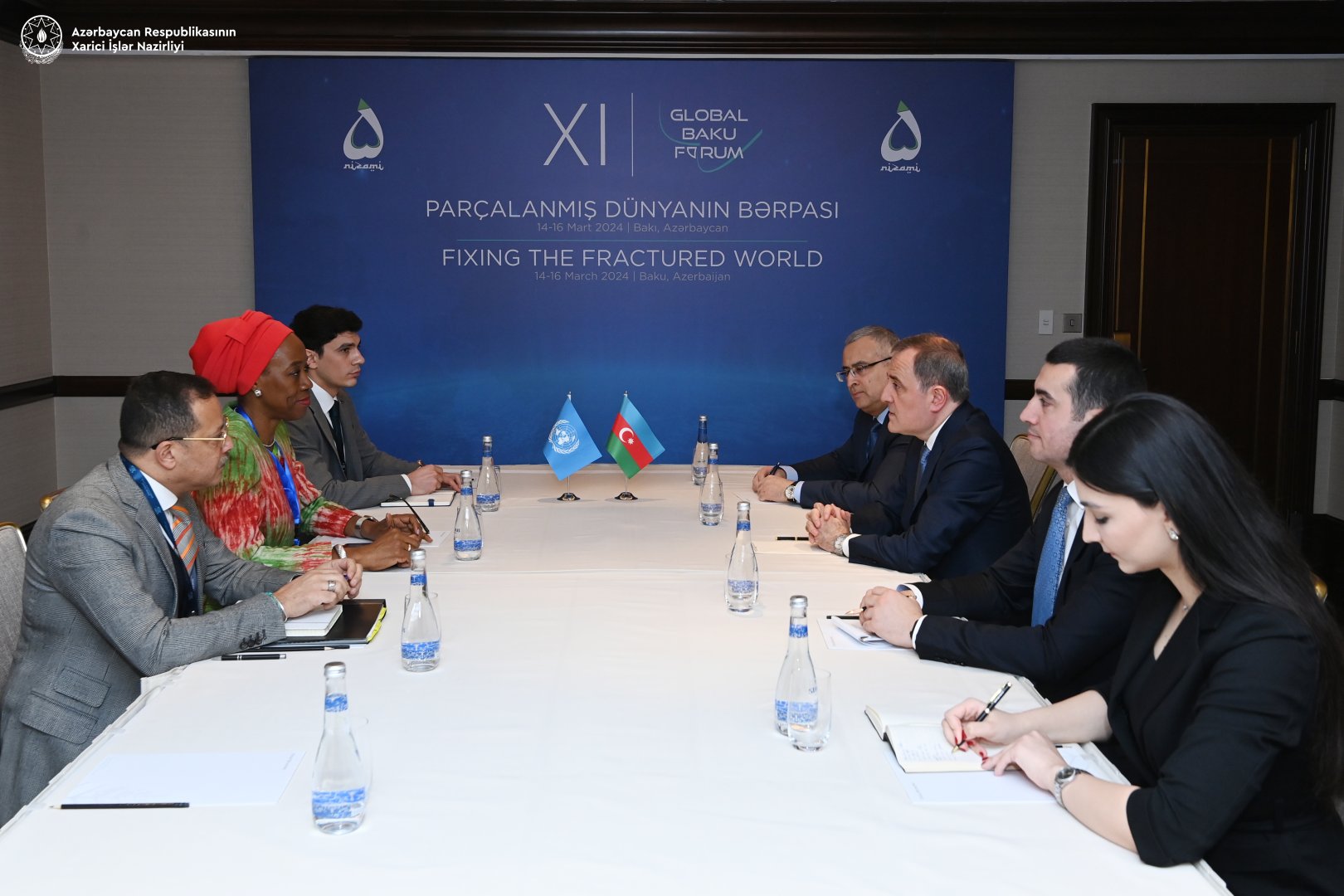 Сегодня министр иностранных дел Азербайджана Джейхун Байрамов встретился с заместителем генерального директора Международной организации по миграции Угочи Дэниэлс, которая находится с визитом в стране для участия в XI Глобальном Бакинском форуме.