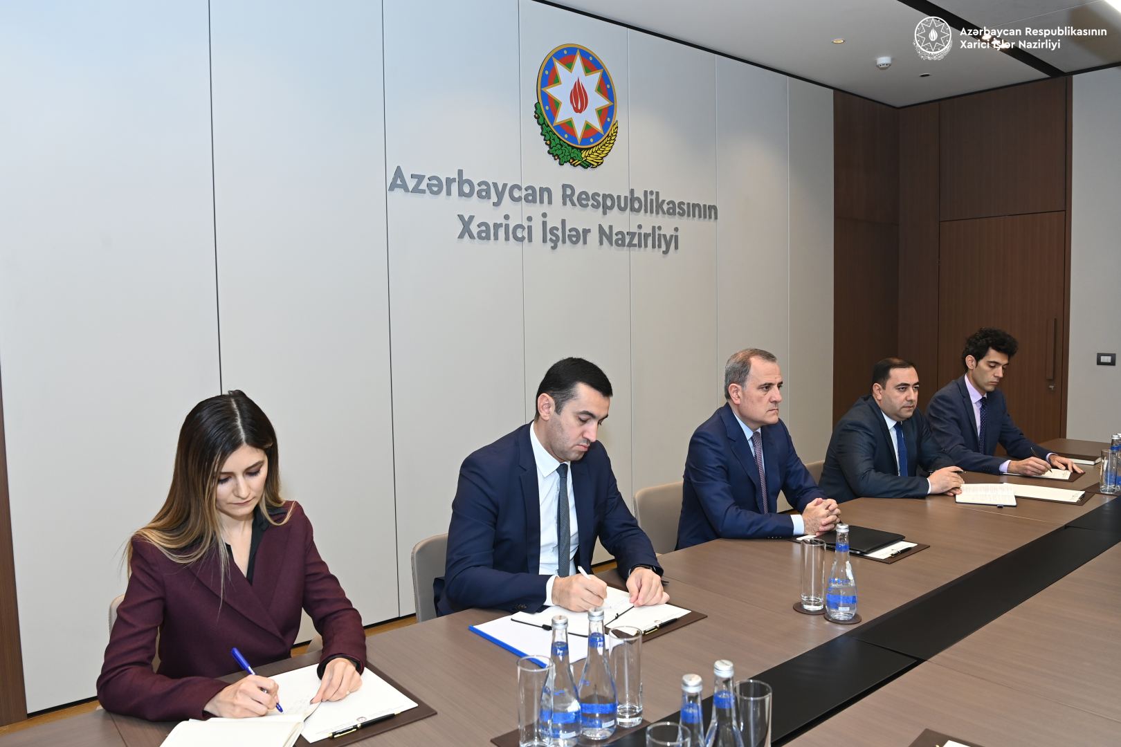 Министр Джейхун Байрамов подчеркнул, что азербайджанская сторона заинтересована в позитивном исходе встреч по мирной повестке дня, проводимых при посредничестве международных партнеров, включая Европейский Союз, и что спустя 30 лет в регионе появилась историческая возможность для обеспечения мира и стабильности.