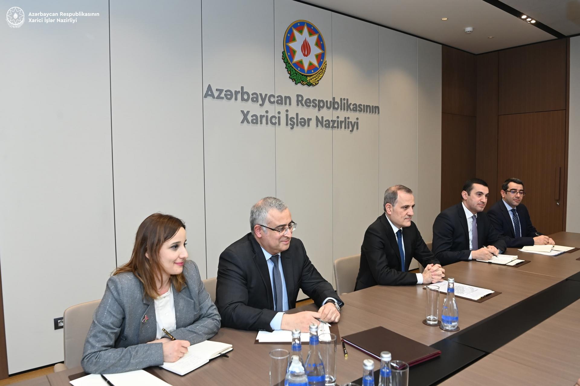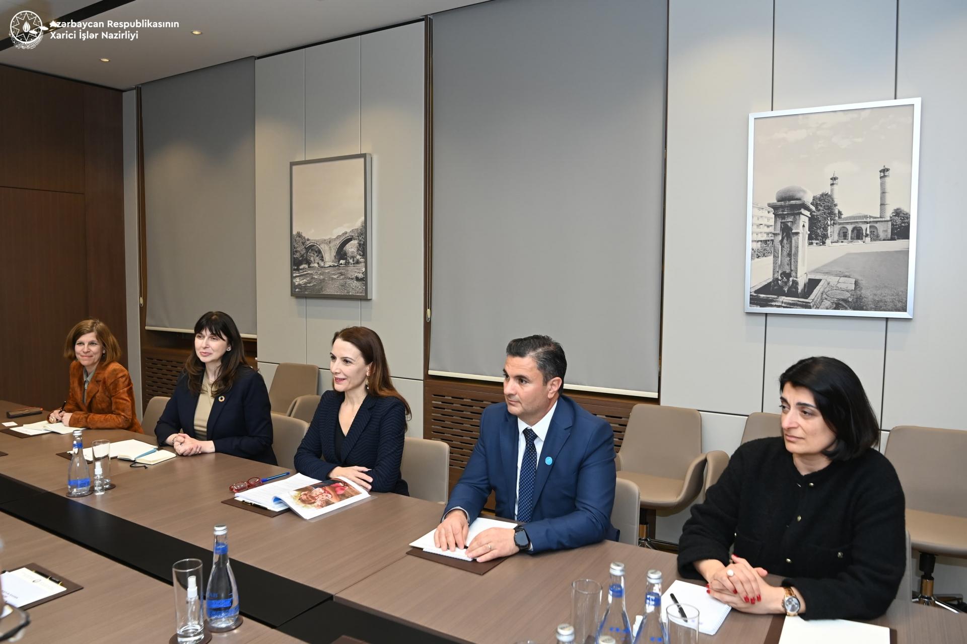 Министр иностранных дел Азербайджана Джейхун Байрамов встретился с региональным директором Детского фонда ООН (ЮНИСЕФ) по странам Европы и Центральной Азии, представителем ЮНИСЕФ в Женевском офисе ООН и специальным координатором по вопросам беженцев и мигрантов в Европе Региной Де Доминицис.