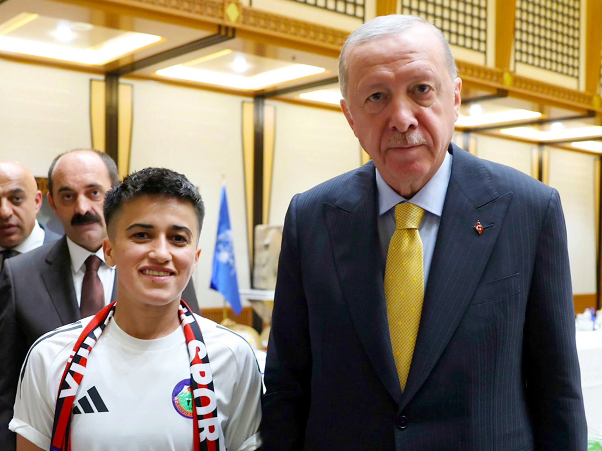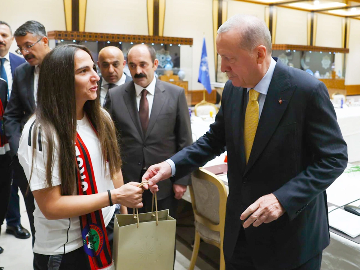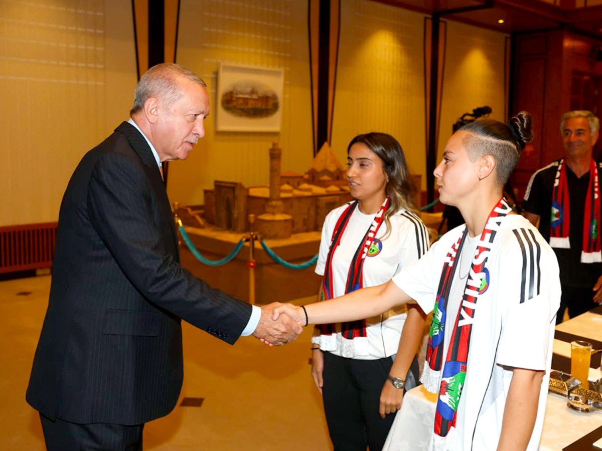 Президент Турции Реджеп Тайип Эрдоган принял женскую футбольную команду «Юксековаспор».