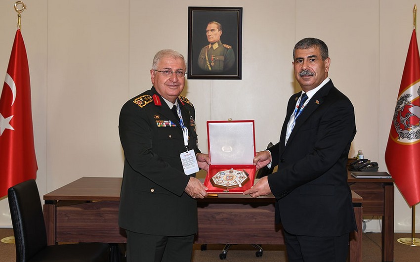 Министр обороны Азербайджанской Республики генерал-полковник Закир Гасанов, находящийся с визитом в Стамбуле для участия в международной оборонной выставке IDEF-2021, встретился с начальником Генерального штаба Вооруженных сил Турецкой Республики генералом армии Яшаром Гюлером.