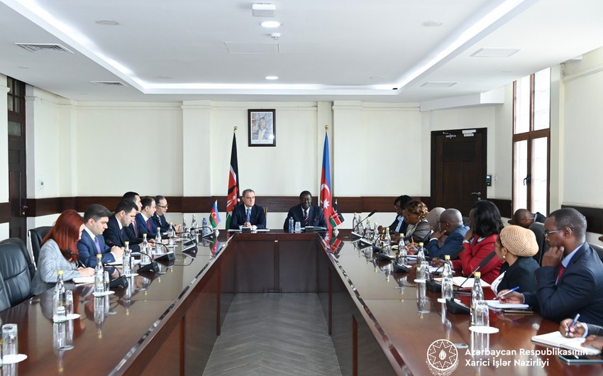 Глава МИД Азербайджана Джейхун Байрамов провел встречу премьером и министром иностранных дел Кении Мусалией Мудавади в расширенном составе.