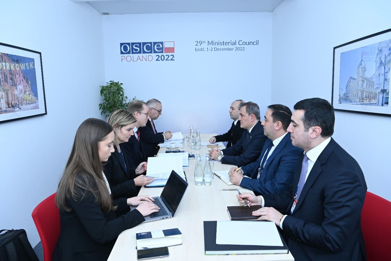 Министр иностранных дел Азербайджана Джейхун Байрамов в рамках участия в 29-м заседании Совета министров ОБСЕ в городе Лодзь встретился с министром иностранных дел Швеции Тобиасом Биллстрёмом.