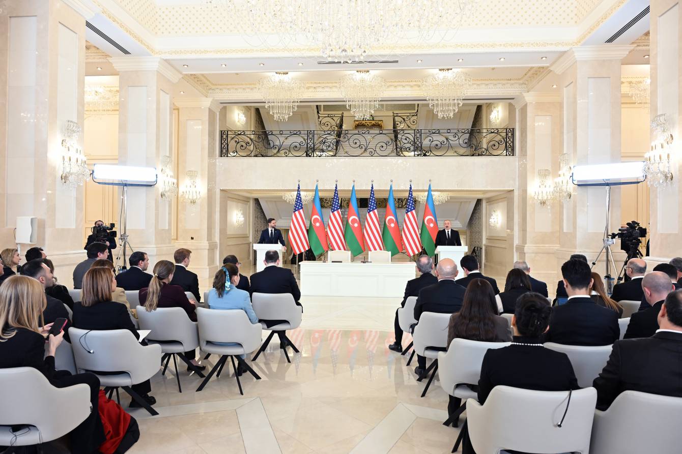 Что касается мирного соглашения, я действительно думаю, что Президент Алиев заслуживает огромного признания. Я был в Армении сегодня ранее, и без лидерства Премьер-министра Армении и Президента Азербайджана мы бы не заключили это мирное соглашение. И, действительно, три человека, я думаю, создали исторический мир: Президент этой страны, Премьер-министр Армении и, конечно, Президент Соединенных Штатов. Работая вместе, они создали мир там, где прежде была война, и я думаю, в будущем создадут процветание там, где когда-то были только боевые действия и конфликты. Это удивительное свидетельство лидерства Президента, а также лидерства Президента Алиева. И опять же, это то, чему Президент Соединенных Штатов посвятил нашу внешнюю политику. Зачем нам воевать друг с другом, если мы можем заниматься торговлей, выстраивать партнерские отношения между собой?!