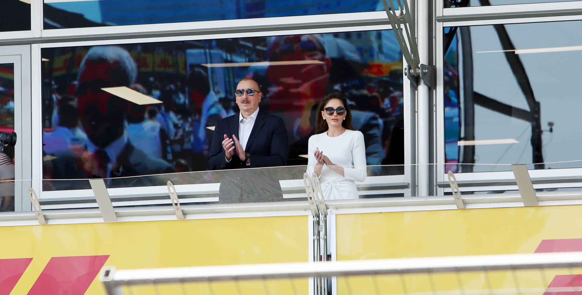 Ильхам Алиев и Мехрибан Алиева наблюдали за основной гонкой Гран-при Азербайджана «Формулы 1»