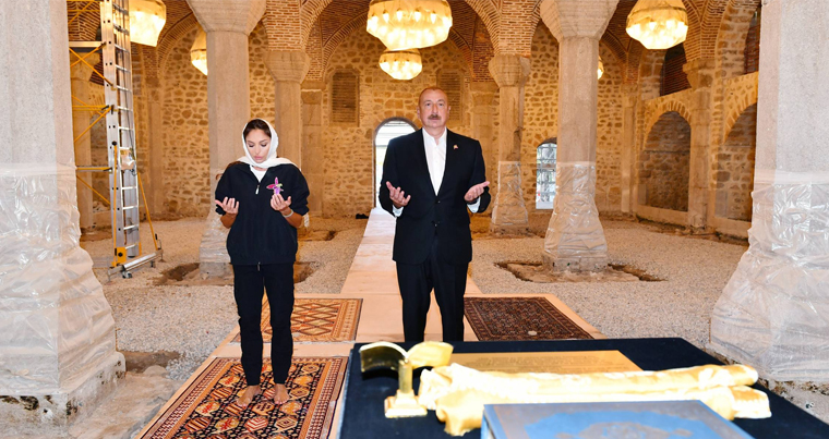 27 сентября Президент Азербайджанской Республики Ильхам Алиев и первая леди Мехрибан Алиева посетили в городе Шуша мечеть Юхары Говхар Ага, ознакомились с проводимыми здесь работами по реконструкции и восстановлению.