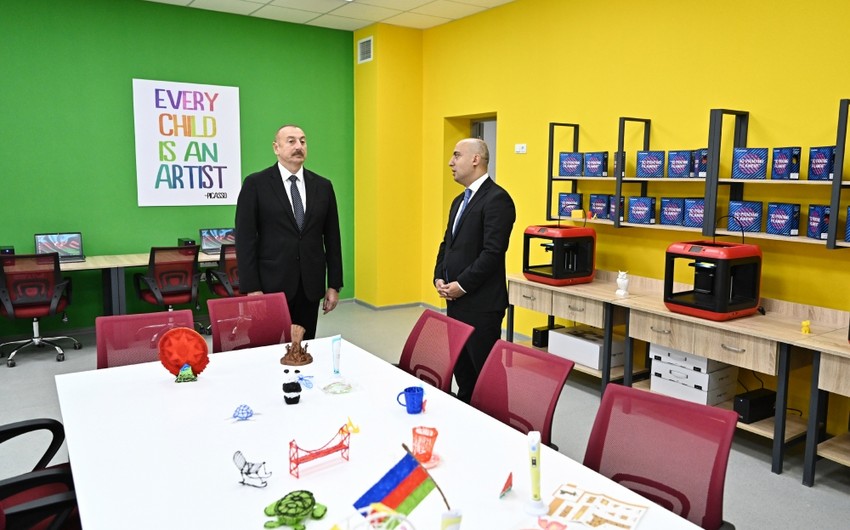 Ильхам Алиев ознакомился с условиями, созданными в здании заново отстроенной школы в поселке Сарай