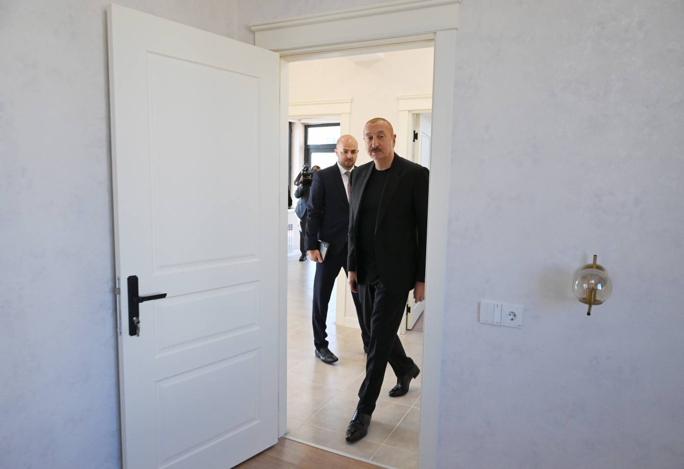 После ознакомления с условиями, созданными в селе Хоровлу Джебраильского района, глава государства встретился с переселившимися в село жителями, вручил им ключи от квартир.