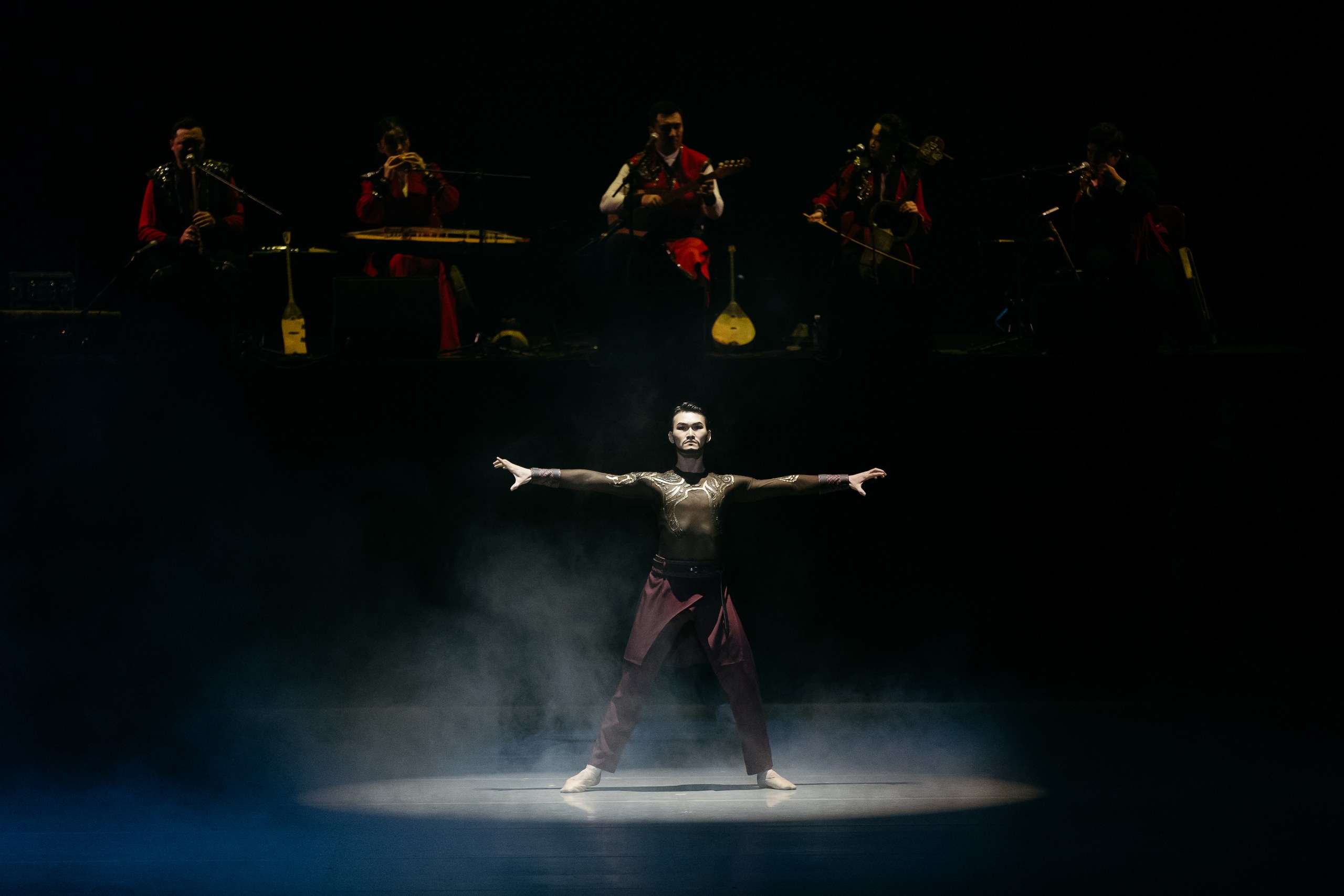 – Я давно хотел создать национальную хореографическую постановку, которая пробуждала бы мужество, окрыляла и давала силу. Когда начал работать над этим номером, я изучал историю Абылай хана. Если заметите, в этом танце артисты делятся на три группы, подобно трем жузам. У каждой из них есть свои символические костюмы с тотемными животными – волком, беркутом и тулпаром. В центре – солист, который старается объединить всех под солнцем, возникает конфликт, а в финале они словно взбираются на высокую вершину. То, как артисты поднимают солиста над собой, символизирует избрание Абылая ханом.