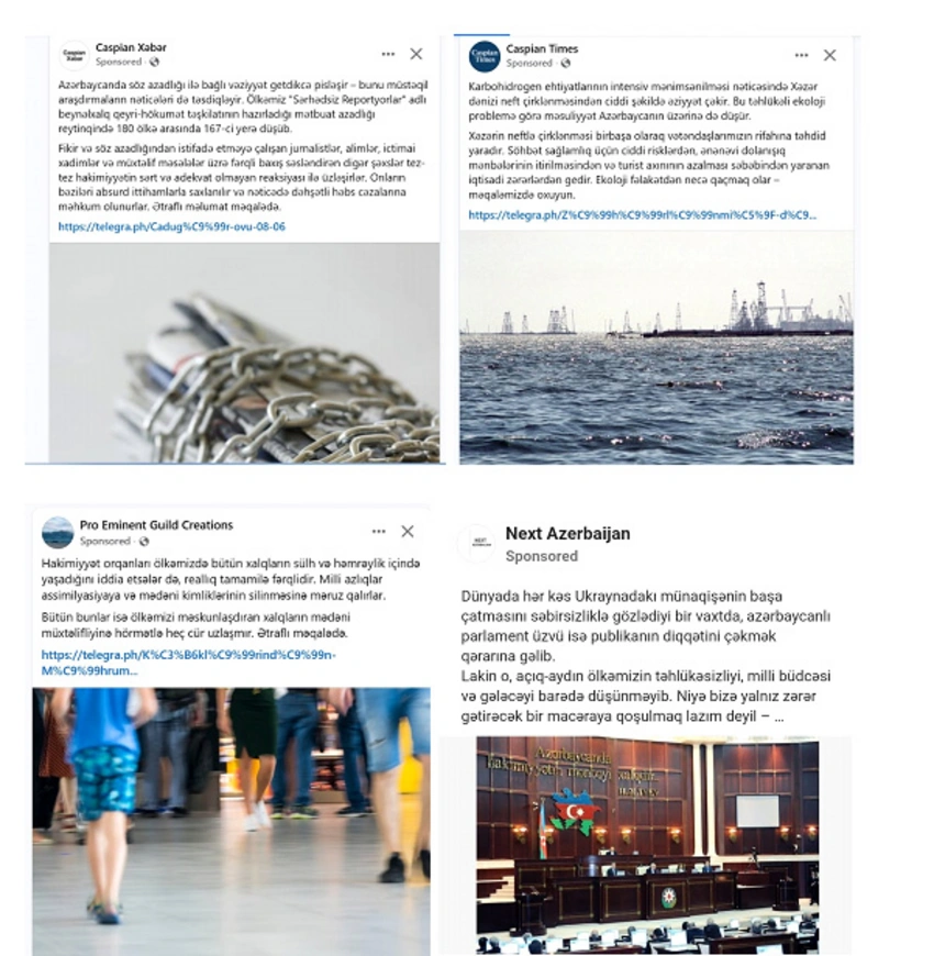 Кампания дезинформационного характера и провокационных идей осуществлялась через недавно созданные страницы «Caspian Xəbər», «Caspian Times», «İşıq Media», «Pro Eminent Guild», «Next Azerbaijan» и другие подобные, управляемые из единого центра.