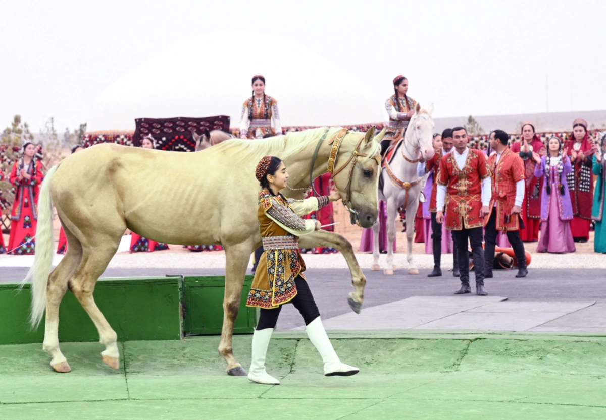 Национальная группа конных игр «Галкыныш», хранящая древние туркменские традиции конных игр, национальной культуры и фольклора, во время выступления продемонстрировала гостям богатое культурное наследие.