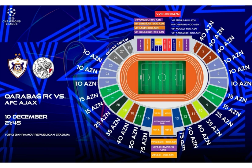 Билеты на матч основного этапа Лиги чемпионов УЕФА между «Карабахом» и «Аяксом» (Нидерланды) поступили в продажу.