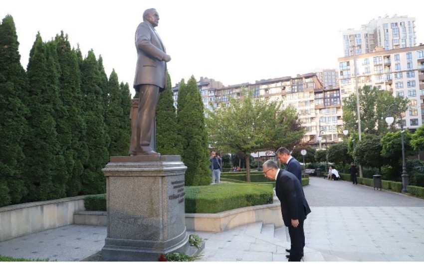 В первый день поездки Э.Азизов и члены делегации посетили в Киеве памятник общенациональному лидеру азербайджанского народа Гейдару Алиеву, почтили память великого лидера и возложили к памятнику цветы.