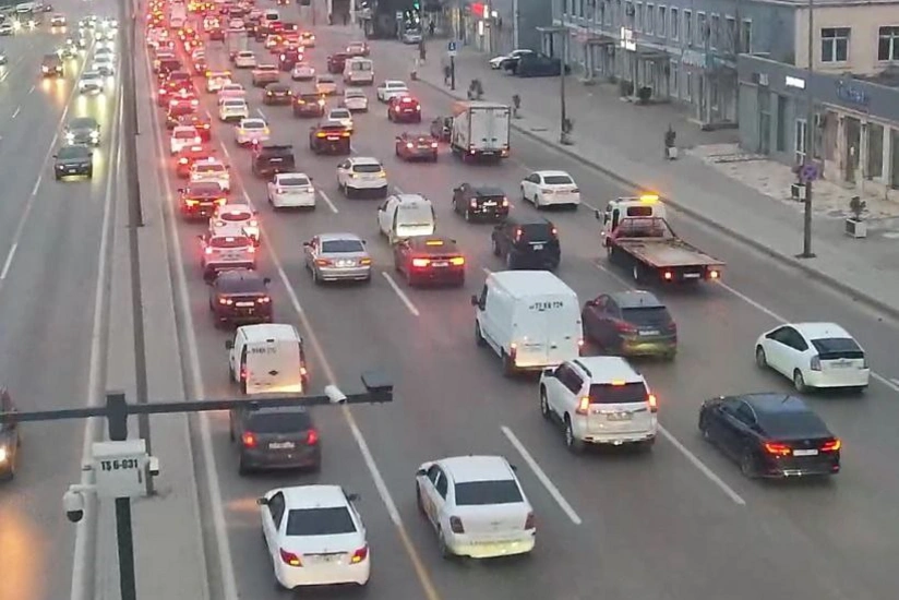 На нескольких дорогах Баку наблюдаются заторы.