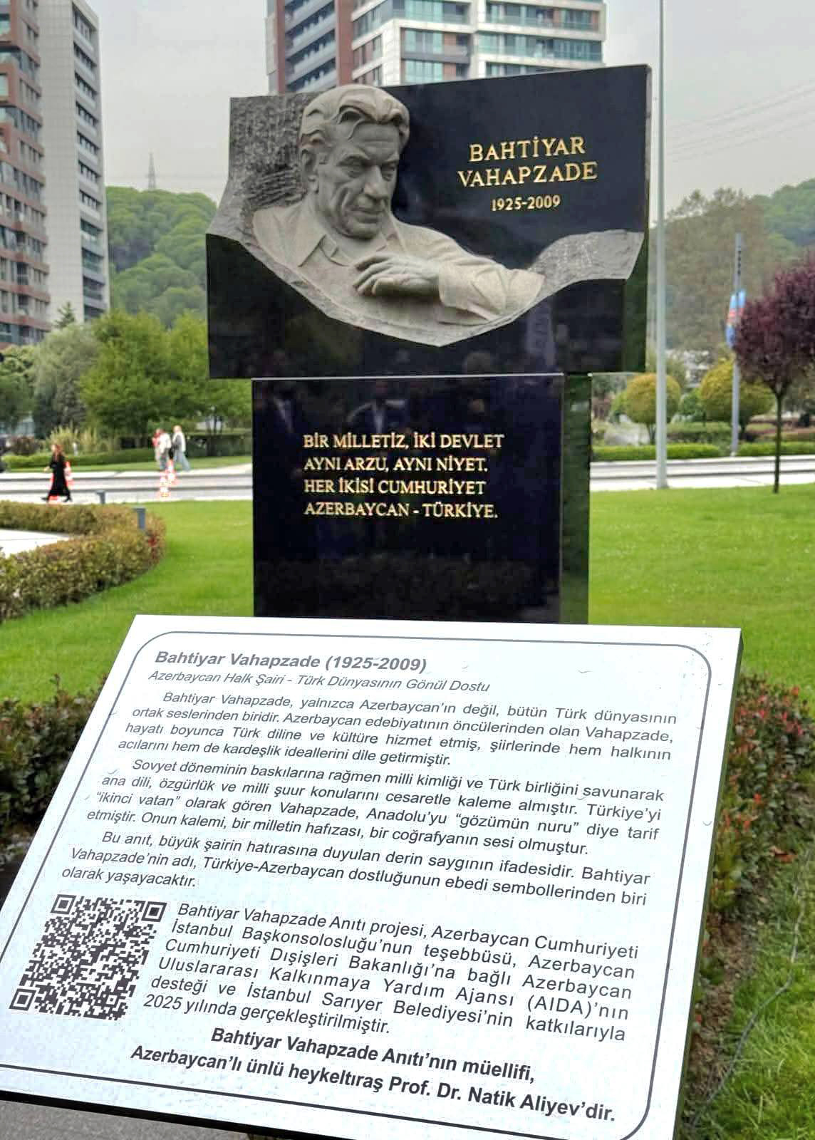 Напомним, что, выступая на церемонии открытия горельефа, которая началась с исполнения государственных гимнов Азербайджана и Турции, генеральный консул Азербайджана в Стамбуле Нармина Мустафаева выразила удовлетворение участием в церемонии открытия памятника именитой личности, являющейся одним из символов нашей культуры и братства. «Этот памятник — не только произведение искусства, но и проявление общей памяти и единства сердец двух народов. Бахтияр Вахабзаде был пером не только Азербайджана, но и всего тюркского мира. Трудно найти другого поэта, который бы так ярко выразил духовное единство тюркского мира. Он был гением, использовавшим своё перо как меч в нашей национальной борьбе, верившим в возрождение наших национальных ценностей и важность постоянной поддержки друг друга братскими народами. Распоряжение Президента Азербайджана Ильхама Алиева о праздновании 100-летия Бахтияра Вахабзаде — показатель большого уважения к его идеям», — сказала Н.Мустафаева.