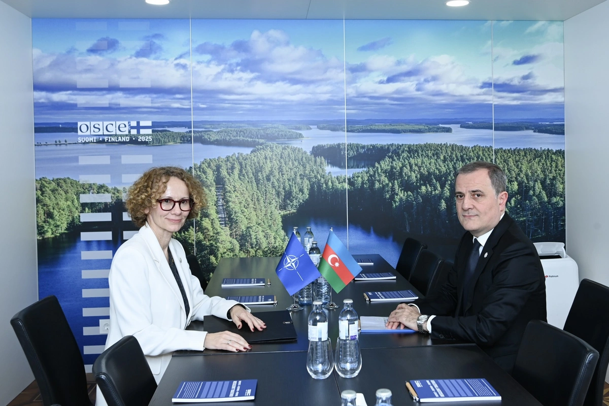Министр иностранных дел Азербайджана Джейхун Байрамов на полях проходящего в австрийской столице Вене 32-го заседания Совета министров ОБСЕ встретился с заместителем генерального секретаря НАТО Радмилой Шекеринской.