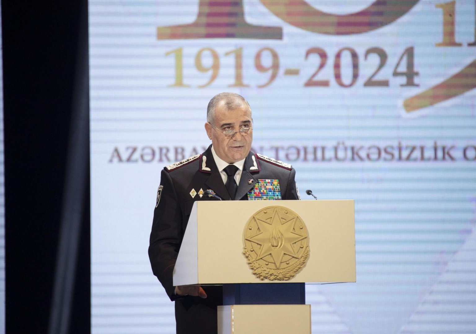 Начальник СГБ, генерал-полковник Али Нагиев, выступая на мероприятии со вступительной речью, сделал экскурс в 105-летнюю историю органов безопасности подробно говорил о становлении данных органов во времена Азербайджанской Демократической Республики, их деятельности в советский период и формировании спецслужб современного Азербайджана после обретения независимости.
