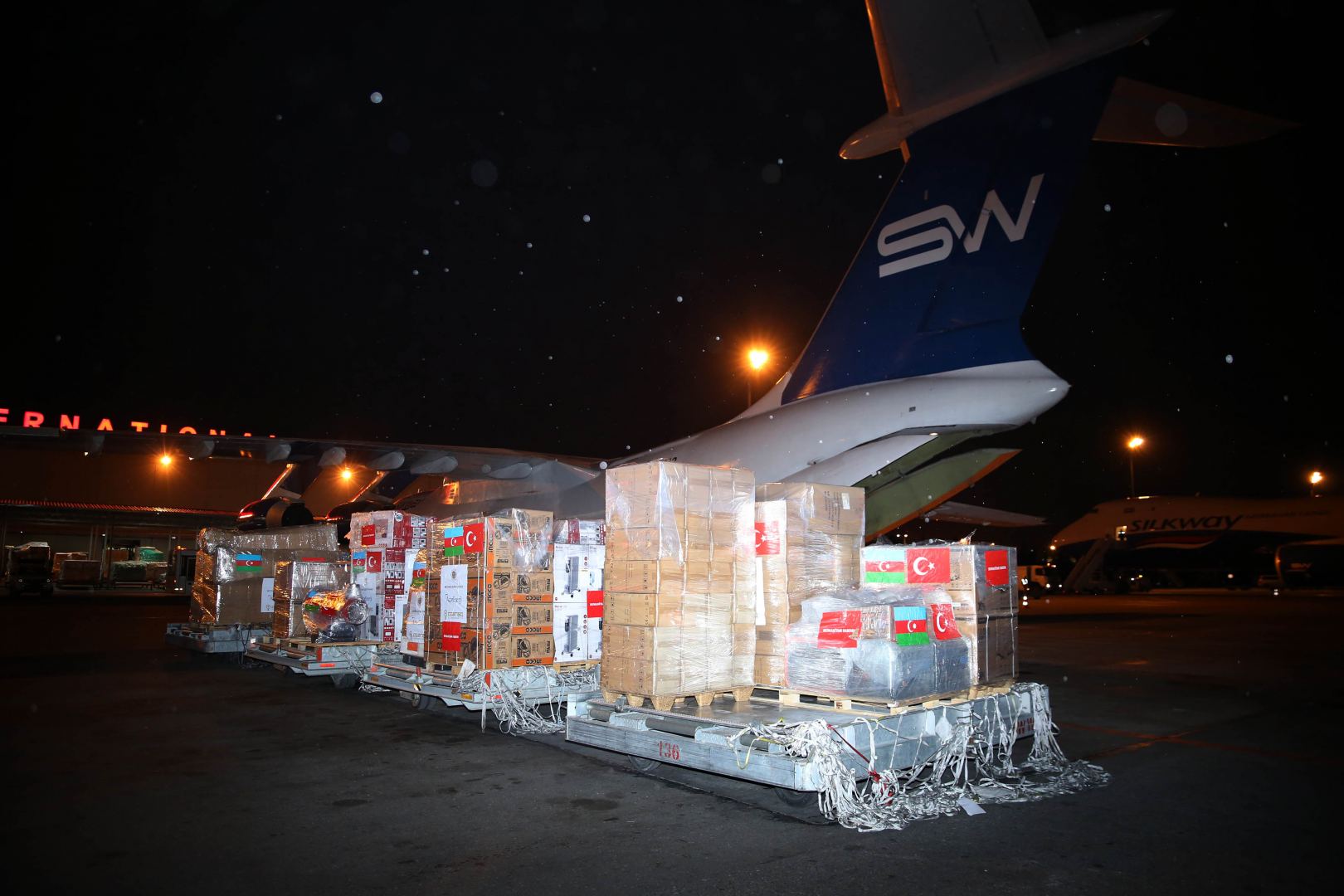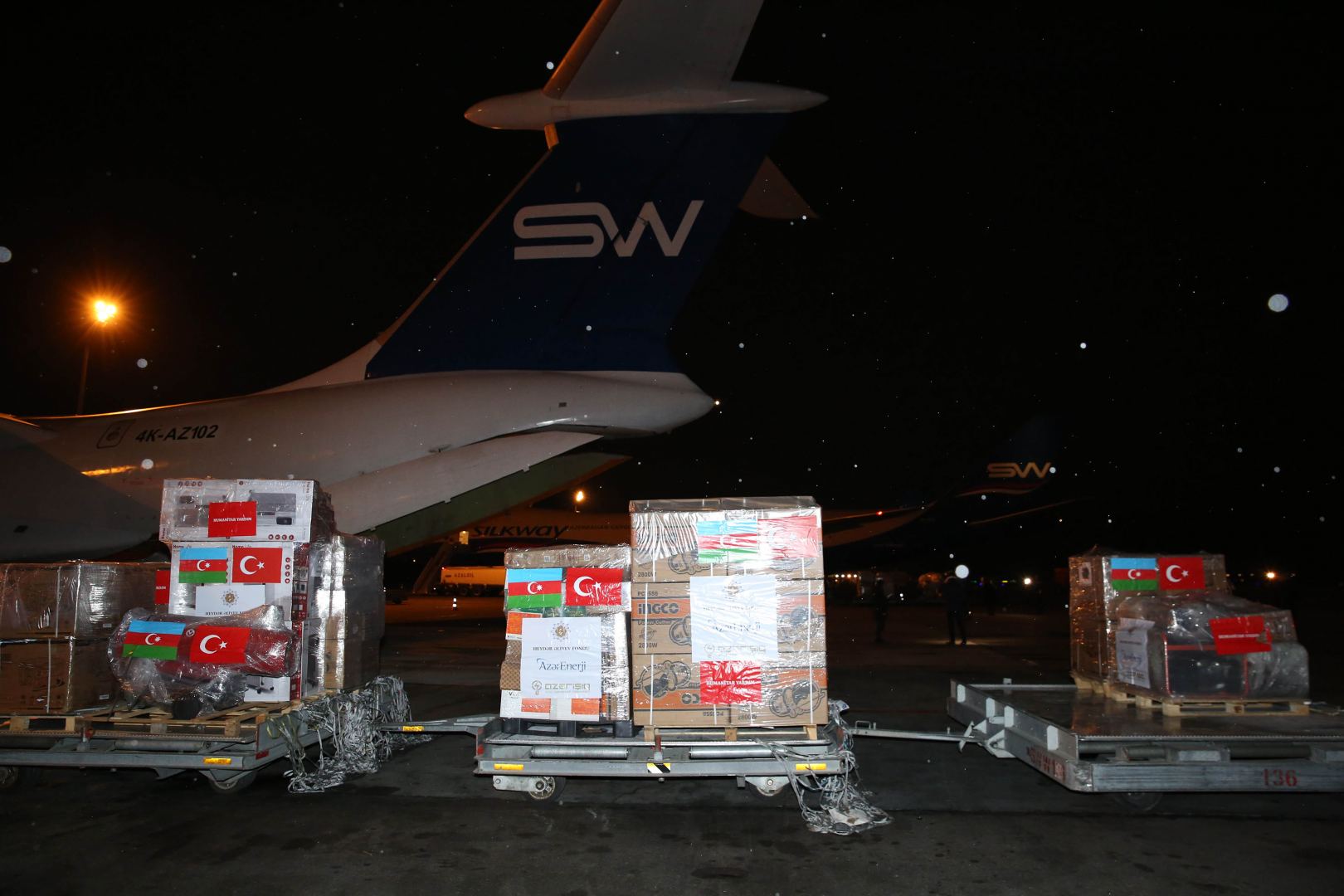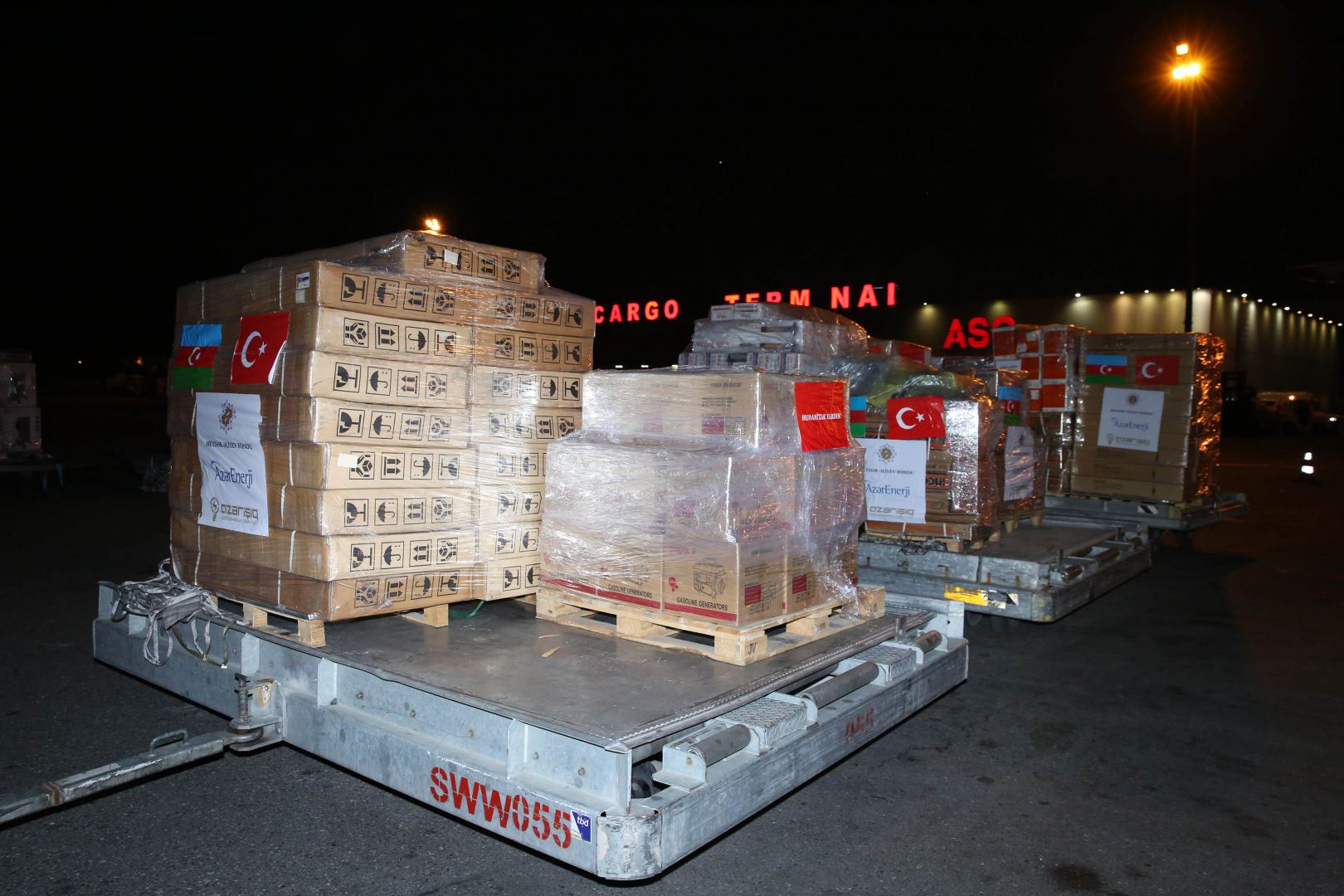 По поручению Первой леди Азербайджана, Президента Фонда Гейдара Алиева Мехрибан Алиевой очередной самолет с гуманитарной помощью из Азербайджана вылетел ночью в зону землетрясения в Турции.