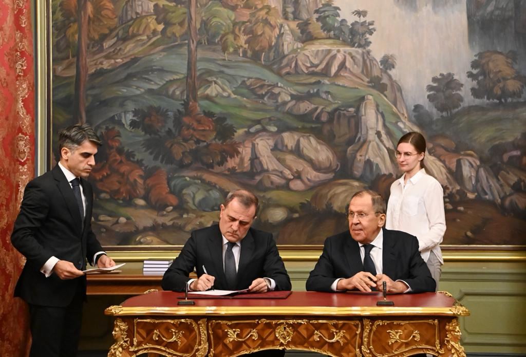 В церемонии подписания приняли участие глава МИД Азербайджана Джейхун Байрамов и глава МИД России Сергей Лавров.