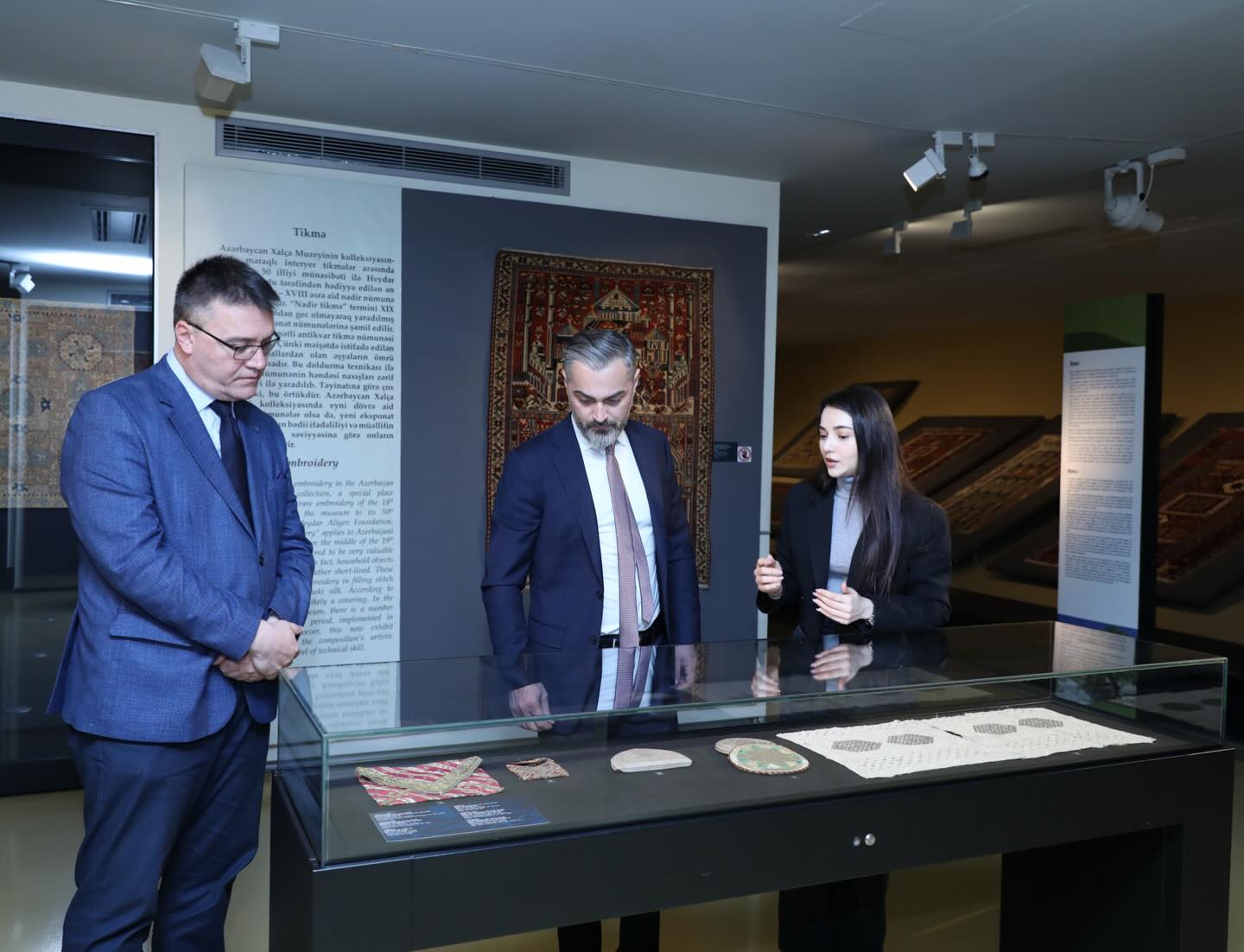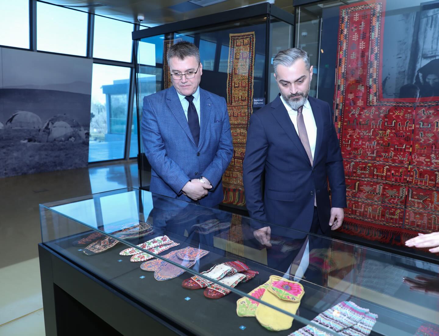 Позже послу Бесарту Кадиа была предоставлена подробная информация о богатых коллекциях, представленных в экспозиции музея. Он также ознакомился с выставкой «Фаиг Ахмед: Эпоха 2011-2024», отделами традиционных технологий и детским отделом музея.