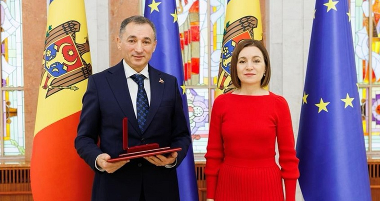 Майя Санду поблагодарила посла Азербайджана за его усилия по укреплению отношений между Кишиневом и Баку и наградила его «Орденом почета» Республики Молдова.