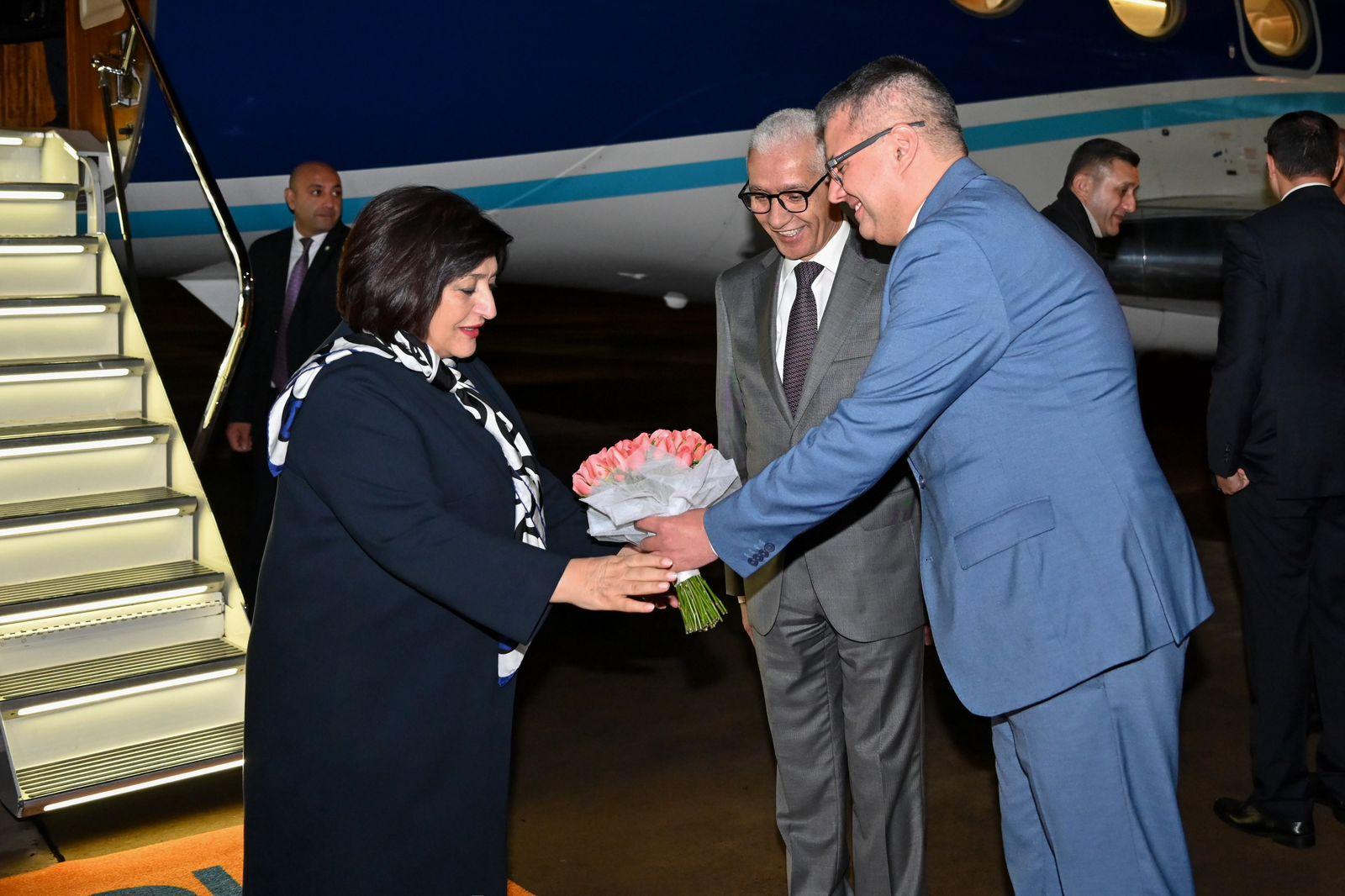 В Международном аэропорту Рабата делегацию встретили председатель Палаты представителей Королевства Марокко Рашид Талби Эль Алами, посол Азербайджана в Марокко Назим Самедов и другие официальные лица.