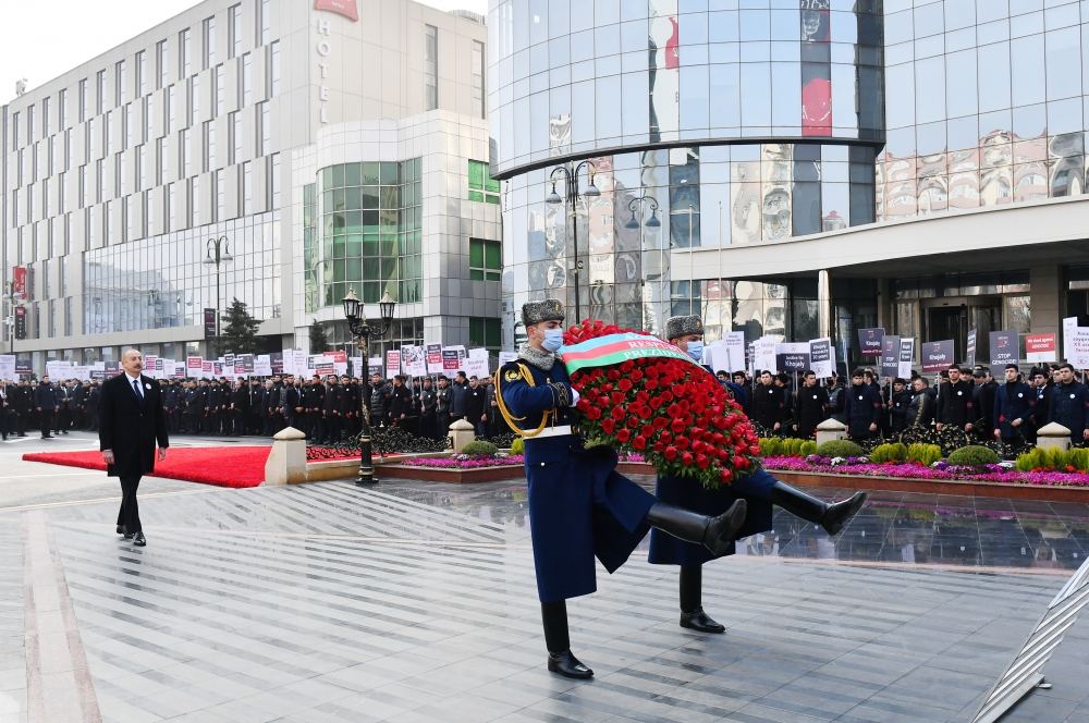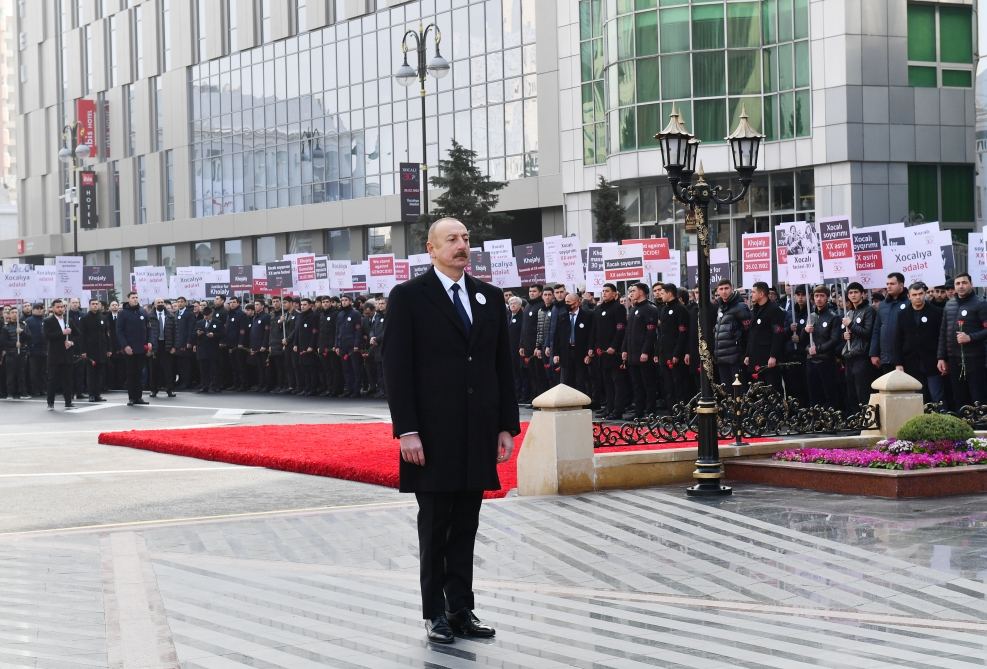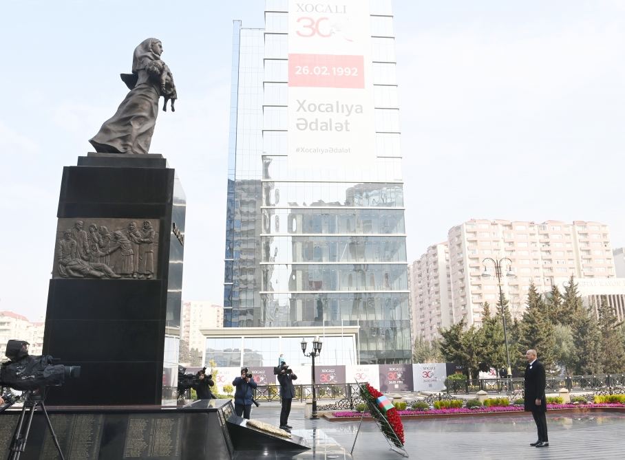 Президент Ильхам Алиев возложил венок к мемориалу, почтил память жертв Ходжалинского геноцида.
