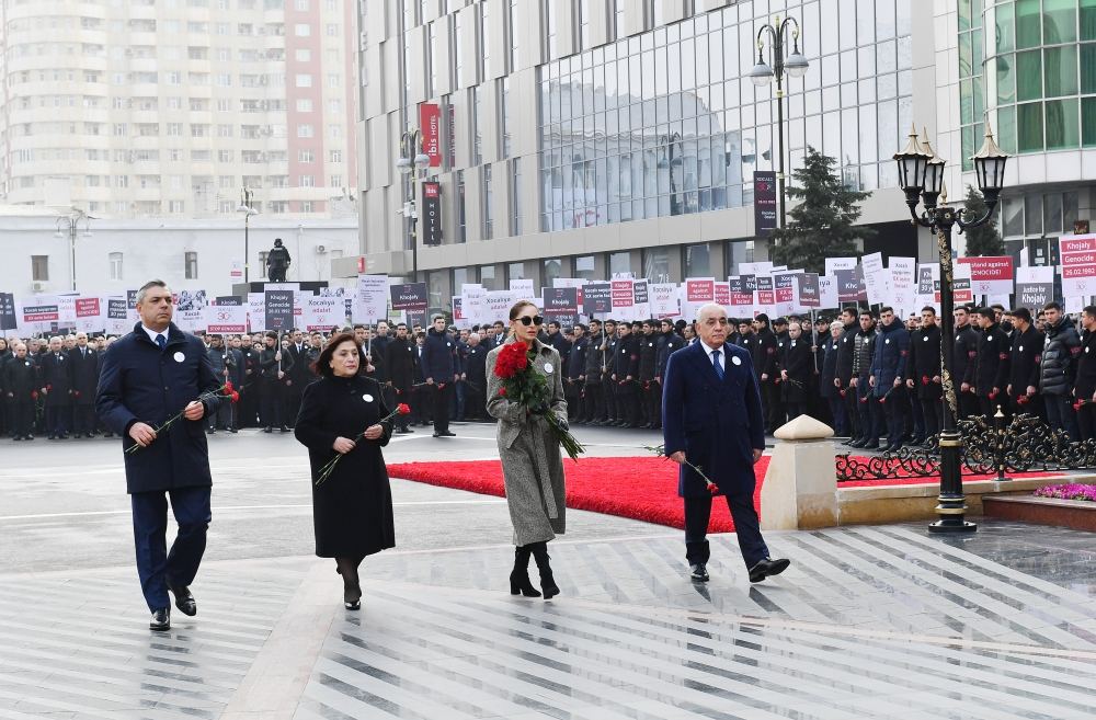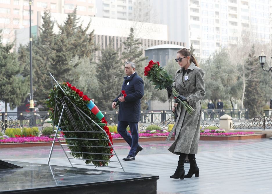 Первая леди Мехрибан Алиева, премьер-министр Али Асадов, председатель Милли Меджлиса Сахиба Гафарова, руководитель Администрации Президента Самир Нуриев возложили цветы к памятнику.