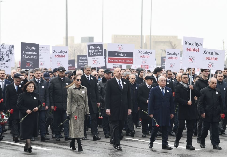 Президент и первая леди приняли участие во всенародном шествии в связи с 30-й годовщиной Ходжалинского геноцида