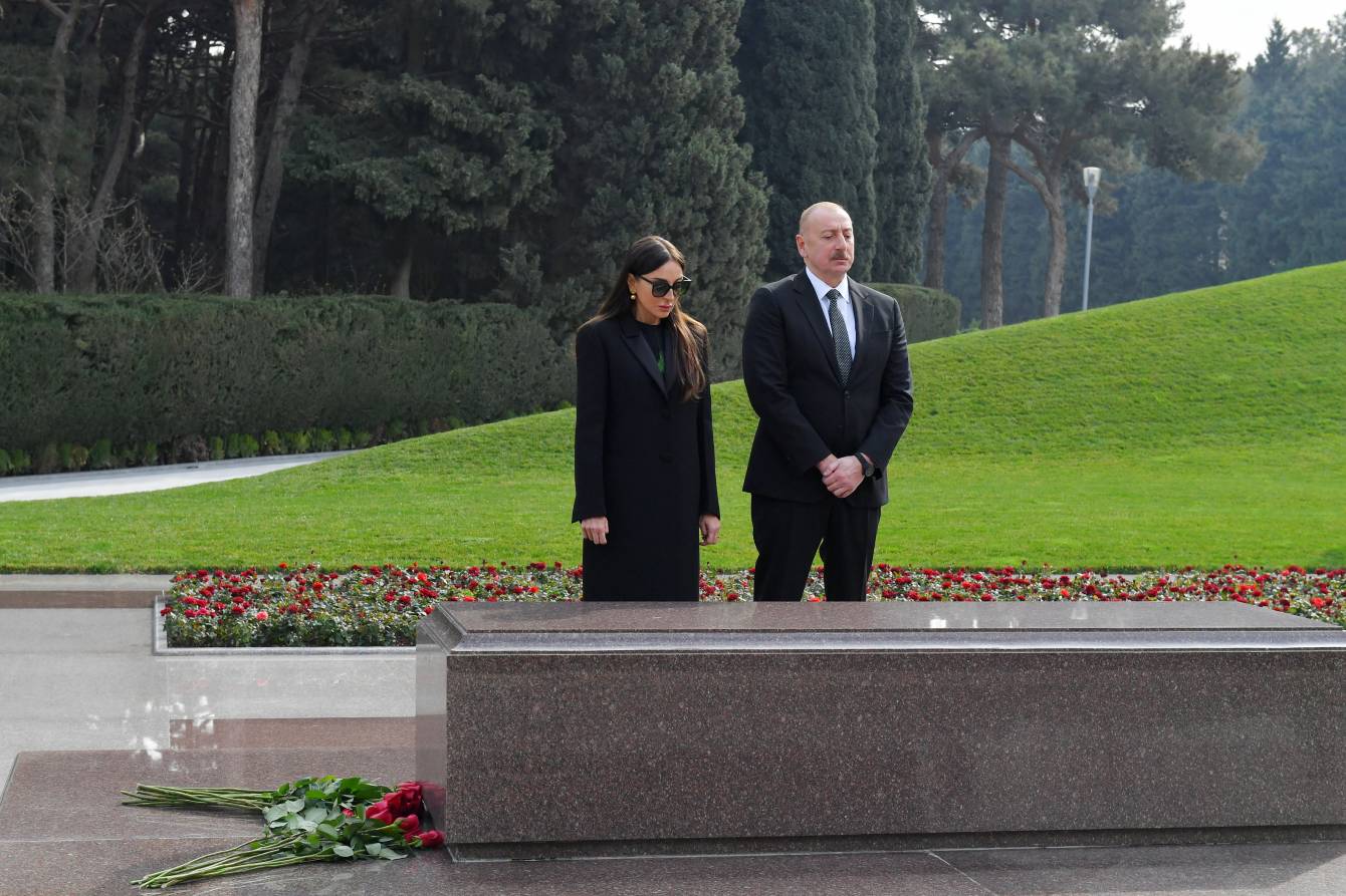 14 февраля после церемонии инаугурации Президент Азербайджанской Республики Ильхам Алиев и первая леди Мехрибан Алиева посетили в Аллее почетного захоронения могилу архитектора и созидателя современного независимого Азербайджанского государства, общенационального лидера нашего народа Гейдара Алиева и почтили его память.
