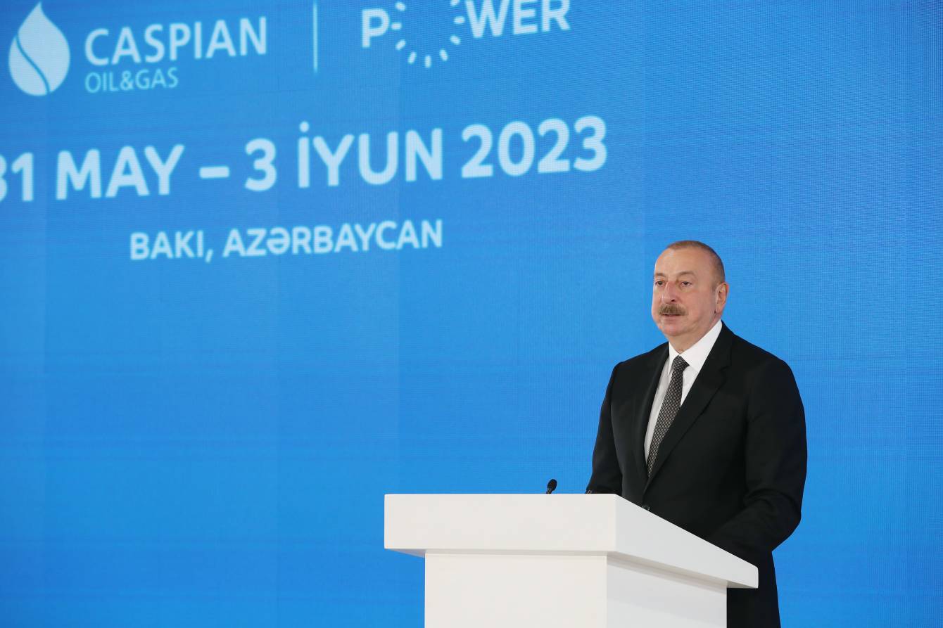 31 мая Президент Азербайджанской Республики Ильхам Алиев принял участие в церемонии официального открытия 28-й Международной выставки «Нефть и газ Каспия» и 11-й Каспийской международной выставки «Энергетика и зеленая энергия» — Caspian Power в Бакинском Экспо-центре.