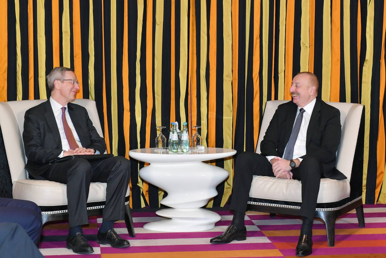 На встрече было отмечено, что немецкие бизнесмены заинтересованы в расширении экономических связей с Азербайджаном. В частности, Президент Ильхам Алиев был проинформирован о предстоящем визите в Азербайджан в феврале этого года представителей компаний, интересы которых связаны со сферами транспорта, логистики, промышленности, возобновляемой энергии и другими отраслями. Подчеркивалось, что эта поездка является результатом встречи с деловыми кругами, проведенной Президентом Азербайджана в рамках прошлогоднего визита в Германию, и это будет самая представительная и большая делегация германских бизнесменов, приезжавшая до сих пор в нашу страну.
