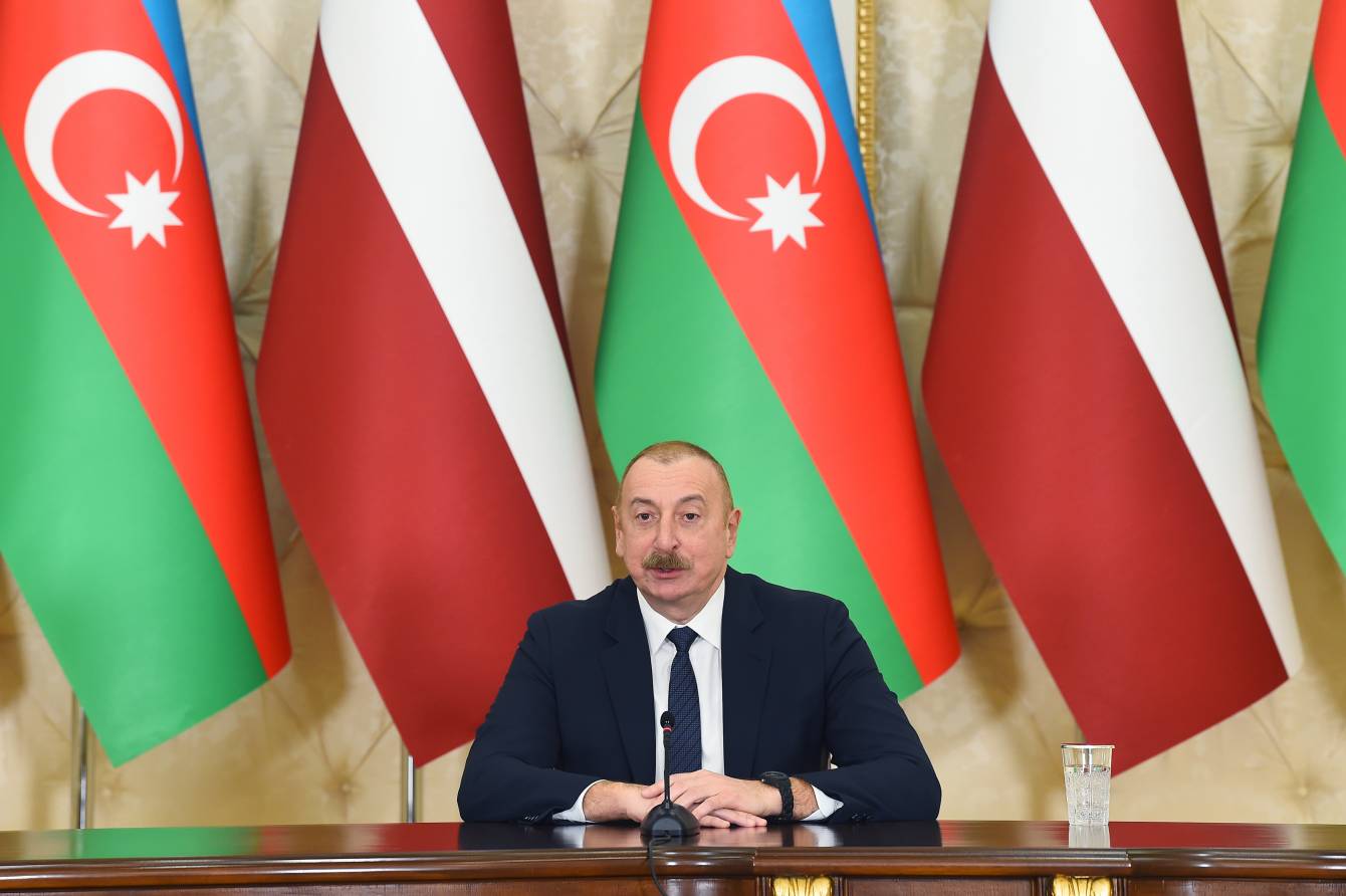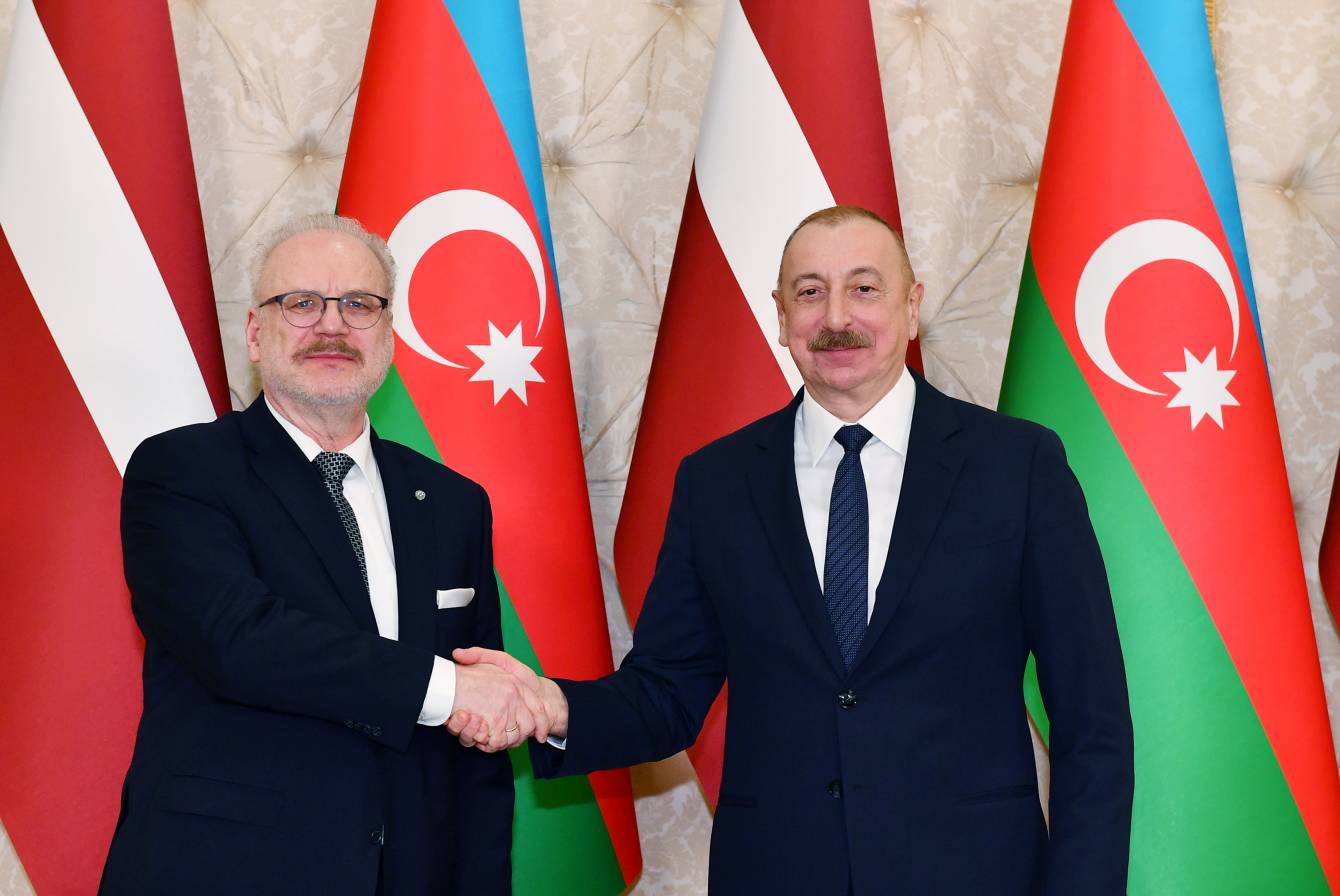 Президенты Азербайджана и Латвии выступили с заявлениями для печати