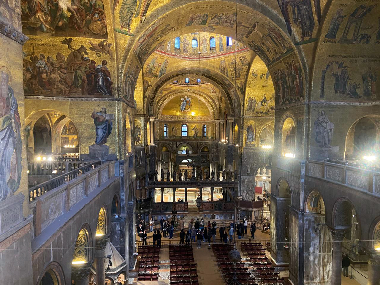 На второй день мы продолжили нашу прогулку, изучая город, любуясь его старинной архитектурой, уникальными памятниками, совершили водную прогулку по бесчисленным венецианским каналам, побывали на главной площади города – Святого Марка, в районе которой мы проживали, и где находятся главные достопримечательности: Собор Святого Марка — главный собор города; Базилика Сан-Марко — важнейший религиозный и исторический центр города, где хранятся мощи апостола Марка, покровителя Венеции; Герцогский дворец (Палаццо Дукале), также называемый Дворцом дожей, — шедевр готического искусства, бывшая резиденция венецианских правителей и центр власти; Колокольня (Кампанила) Святого Марка, с которой открывается панорамный вид на город; Часовая башня с астрономическими часами; Колонны Святого Марка и Святого Теодора — две монументальные колонны у входа с набережной. Одним словом, это центральная и самая известная площадь Венеции, являющаяся архитектурным ансамблем, прогулявшись по которой, мы получили невероятные впечатления от ознакомления с её достопримечательностями. Конечно, обойти всю Венецию за столь короткий промежуток времени просто невозможно, но мы старались использовать по максимуму имеющееся у нас время, чтобы увидеть, как можно больше главных достопримечательностей города. К тому же, нам повезло с погодой, что очень важно. Дождя не было.
