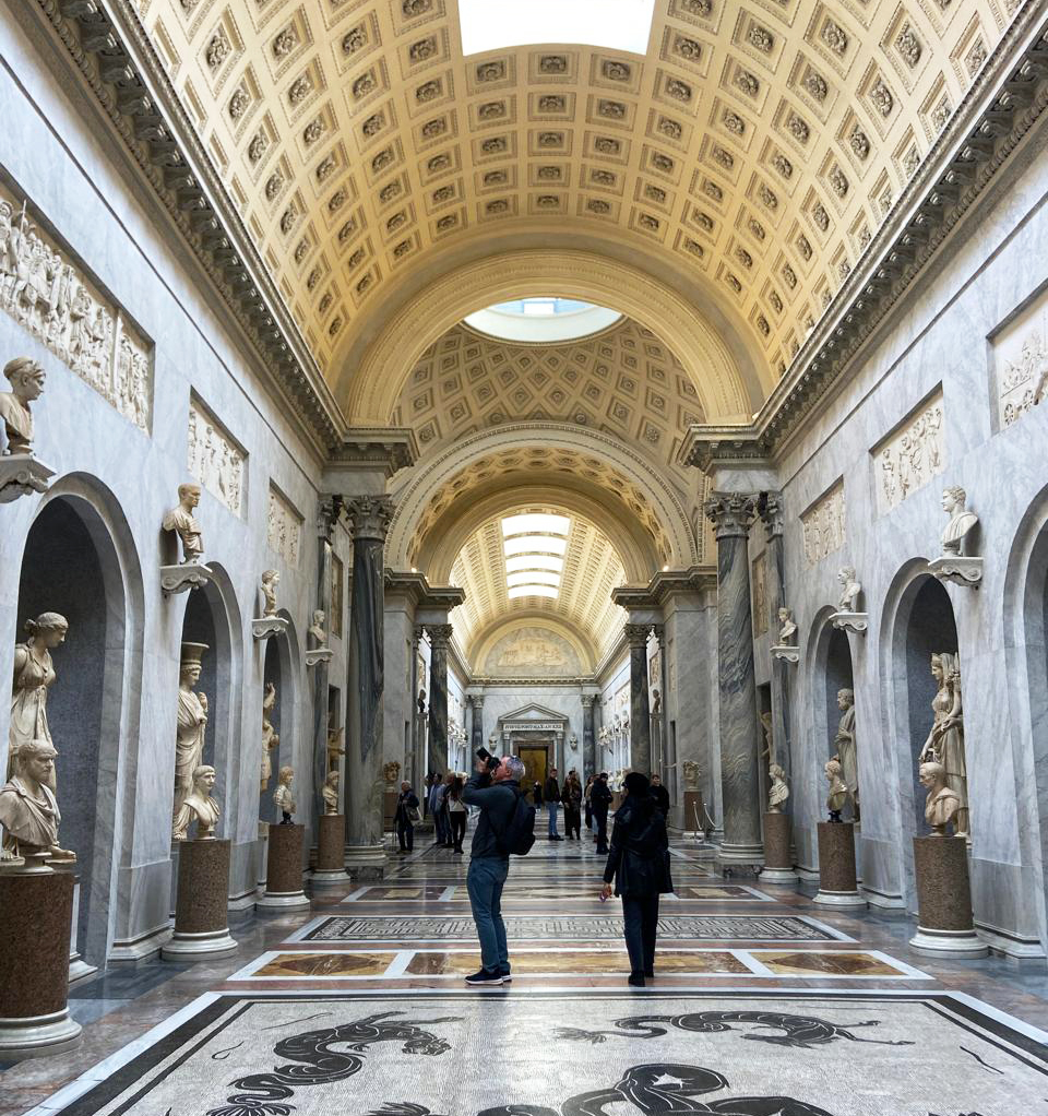 Ознакомление с Италией продолжилось в Риме, куда чета Алиевых вернулась после награждения. «Вернувшись на поезде в столицу Италии, мы продолжили наше путешествие. Это уже наша вторая поездка в эту страну. В прошлый раз мы были во Флоренции, когда получили международную премию «Художник года 2025», учрежденную Foundation Efetto Arte, и присуждаемую авторитетным жюри художникам, наиболее ярко проявившим себя в течение года. Вообще, каждый итальянский город красив по-своему. Было приятно вновь посетить Рим, прогуляться по его древним улочкам, посмотреть исторические достопримечательности города, пройтись по музеям, увидеть знаменитые картины, скульптуры и другие предметы искусства. Диана еще смогла посетить Ватикан с его знаменитыми музеями, где хранятся шедевры итальянского искусства. Получается, что за одну поездку нам удалось посетить два государства, и два города.