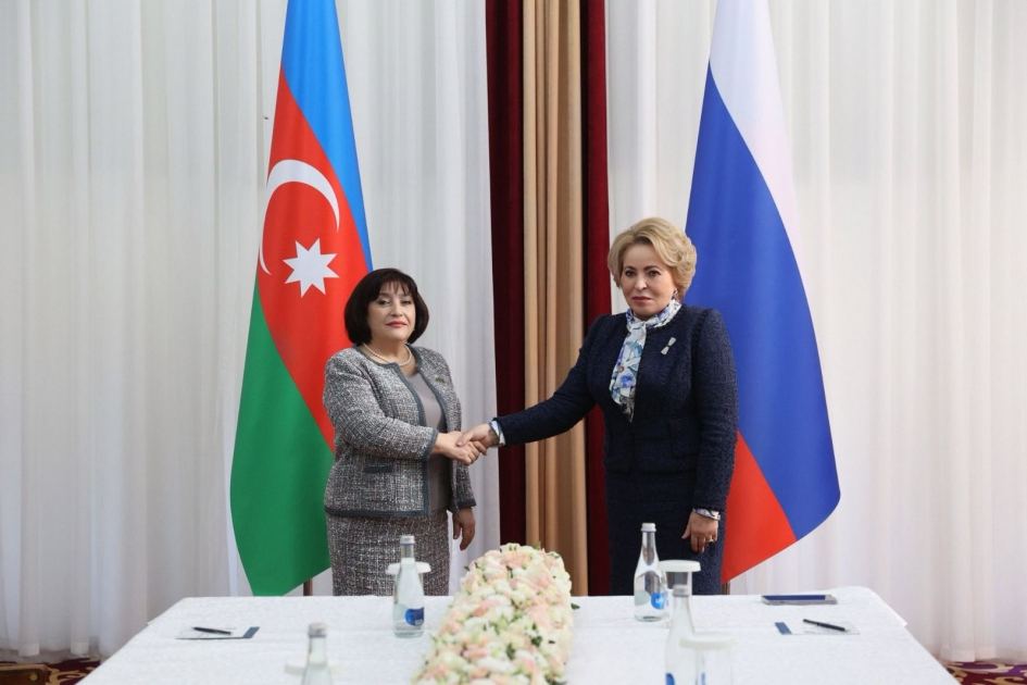 Председатель Милли Меджлиса Сахиба Гафарова в рамках рабочего визита в Кыргызскую Республику встретилась в Бишкеке с председателем Совета Федерации Федерального Собрания Российской Федерации Валентиной Матвиенко.