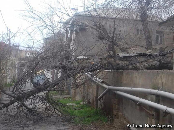 В сообщении отмечается, что в результате сильных порывов ветра в разных районах столицы повалились 15 деревьев.