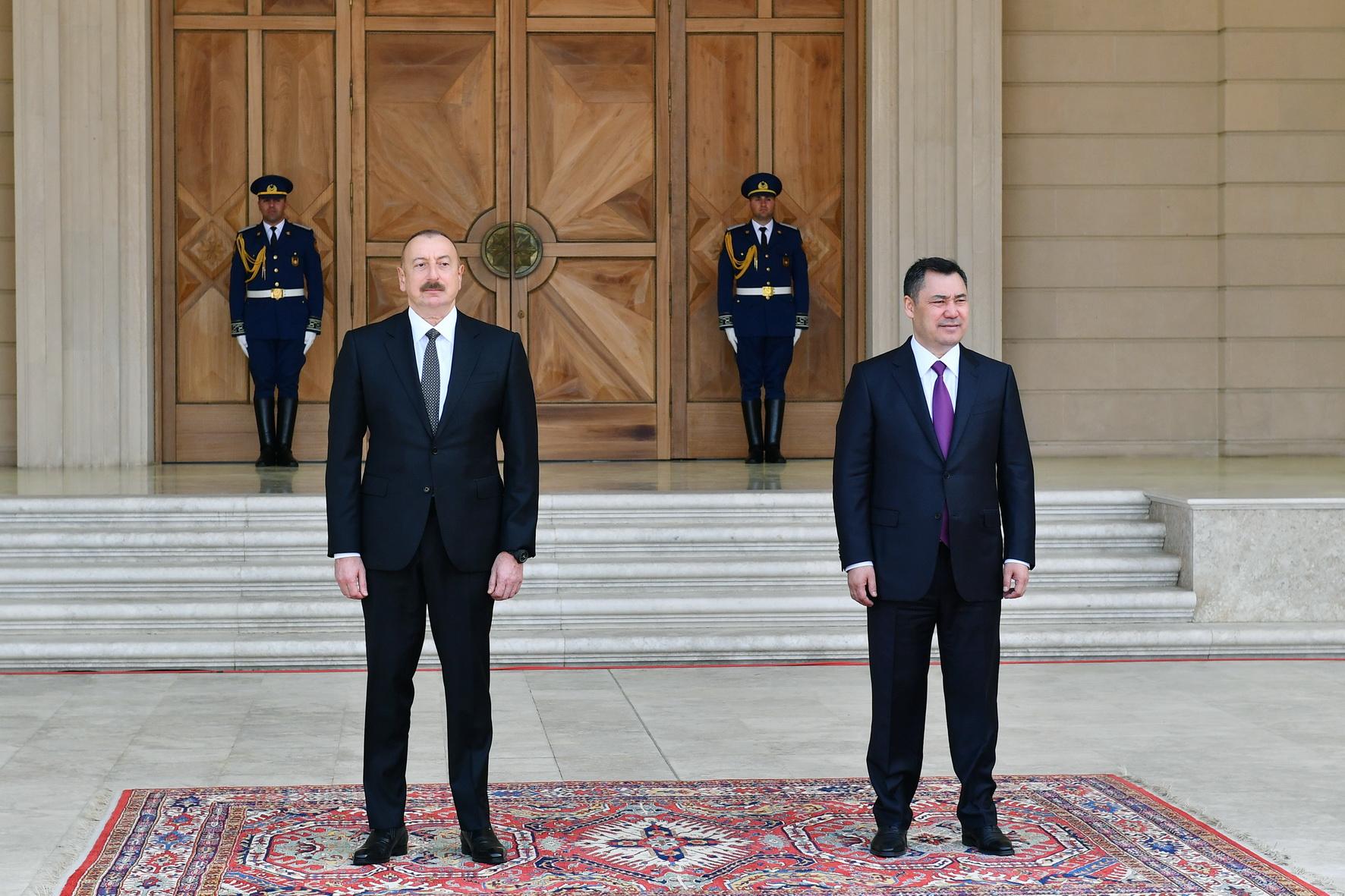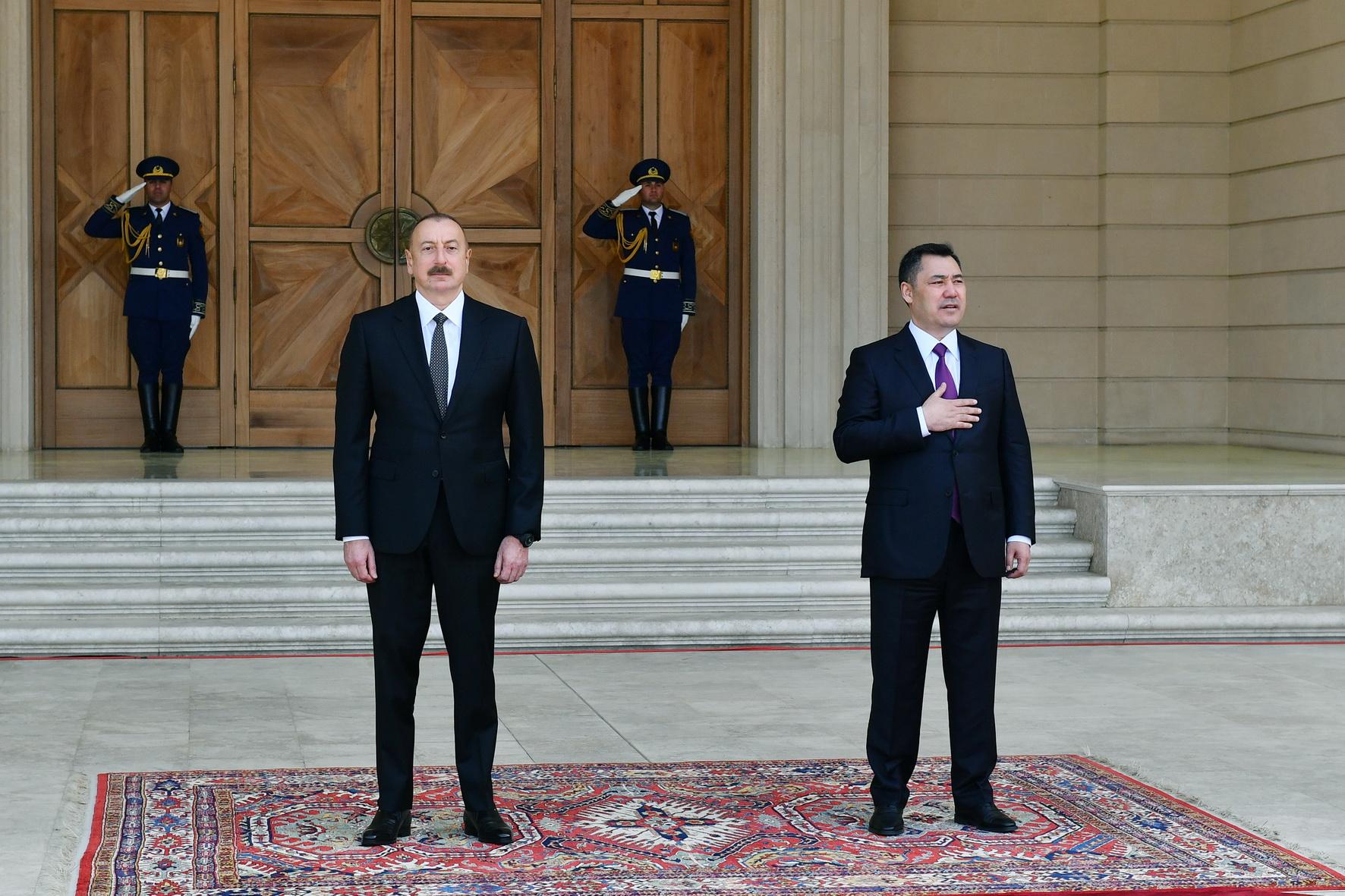 Президент Азербайджана Ильхам Алиев встретил президента Кыргызстана Садыра Жапарова.