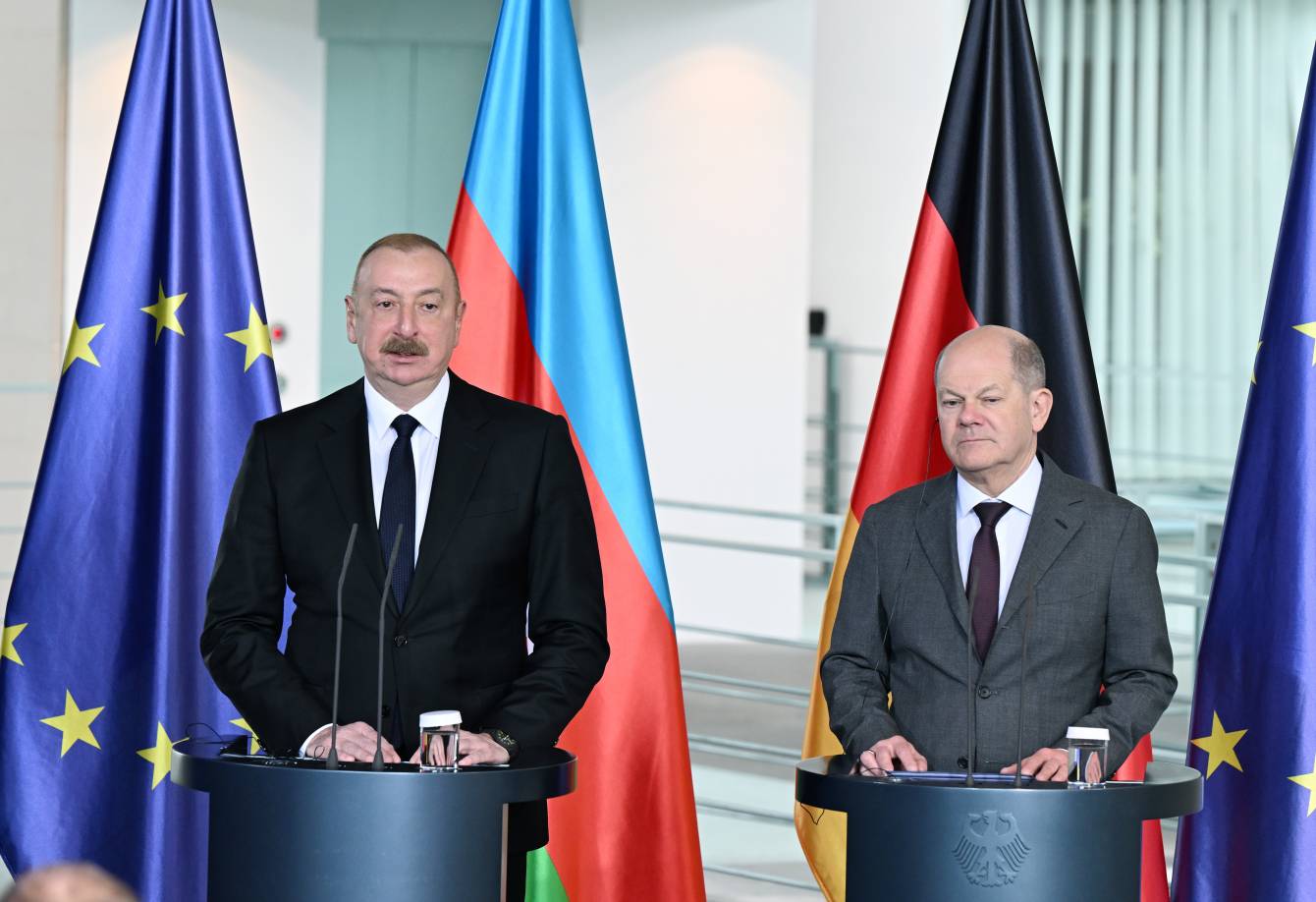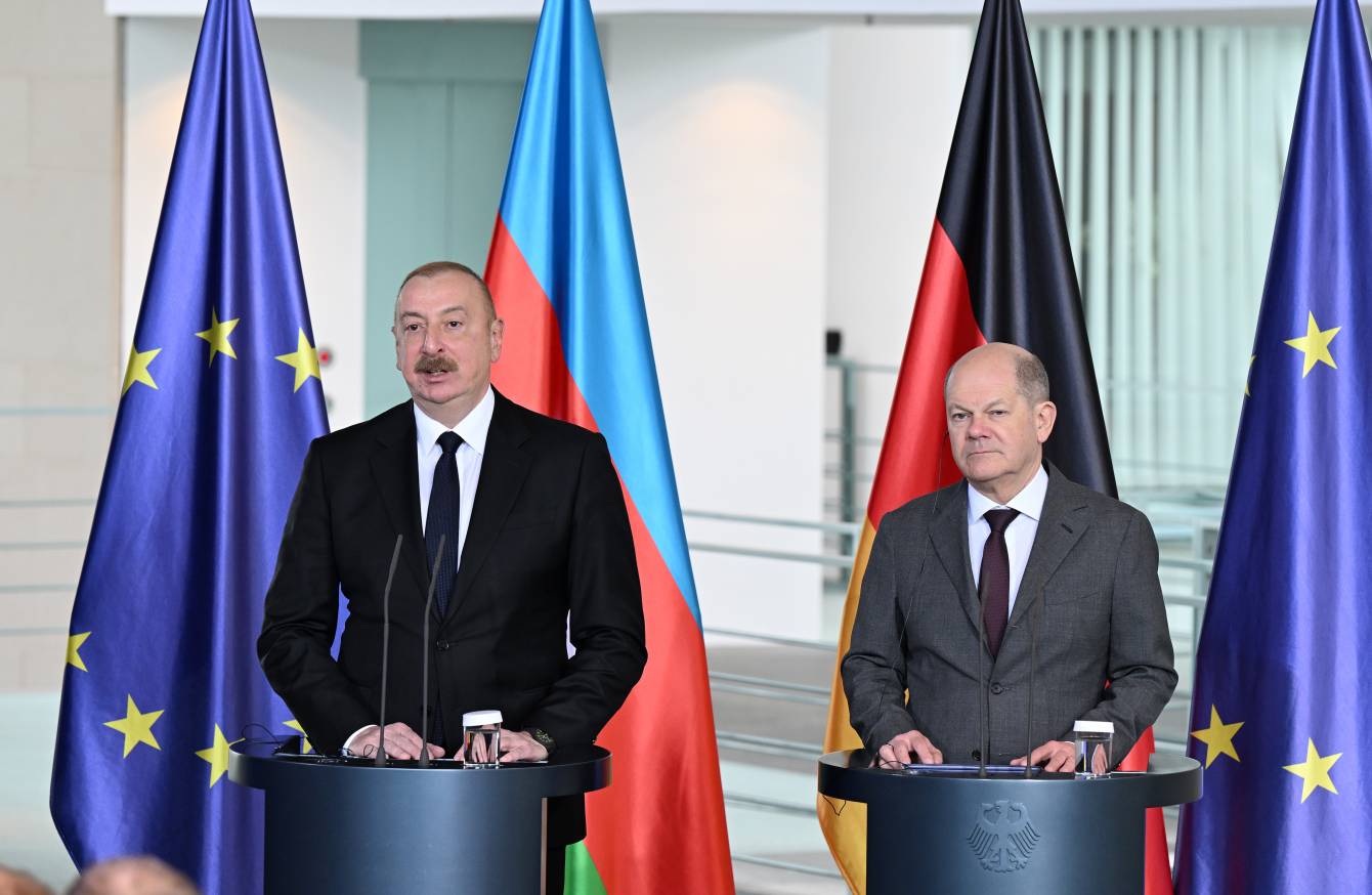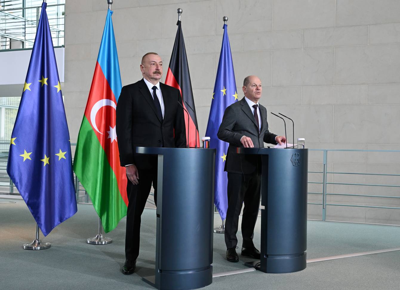26 апреля состоялась совместная пресс-конференция Президента Азербайджанской Республики Ильхама Алиева и Канцлера Федеративной Республики Германия Олафа Шольца.